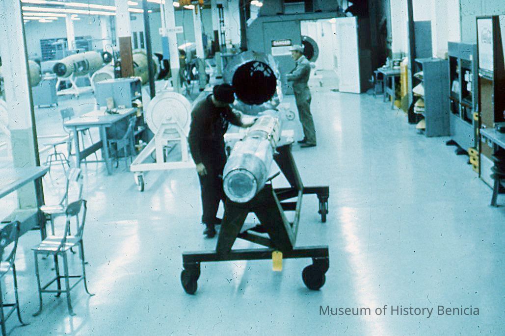 Slide taken by Mrs Cowell of building 600, missile, at the Benicia Arsenal.