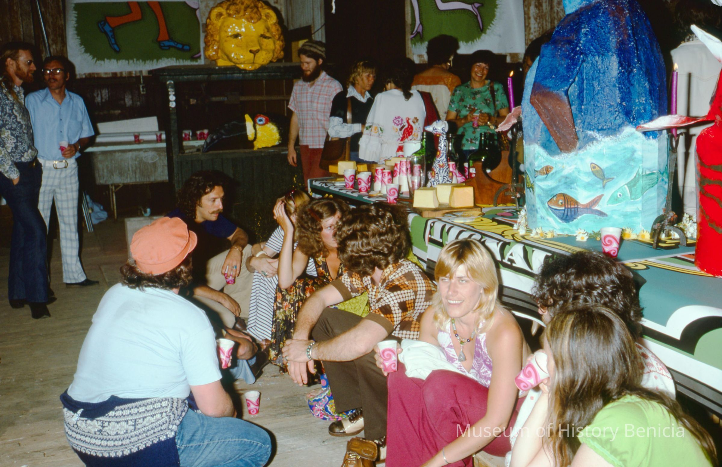 35mm Color Slide: Benicia Old Town Theater Group Art Display and Party: shows a group of people standing and sitting