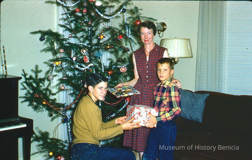 Color Slide 35mm: Henderson famiy at Christmas: L-R: David, Helen and Henry