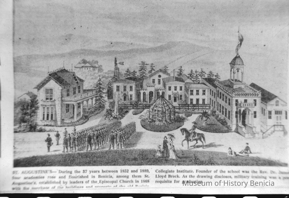 B/W 35mm Slide - photograph of a lithodgraph in a newspaper or magazine article; (text appears at the bottom); St. Augustine's College, Benicia Solano County, Calif.Collection