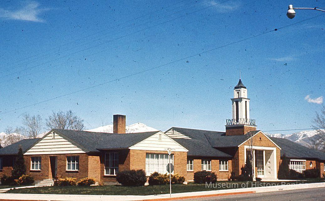 Slide taken by Mrs Cowell of a church at the Utah Arsenal.