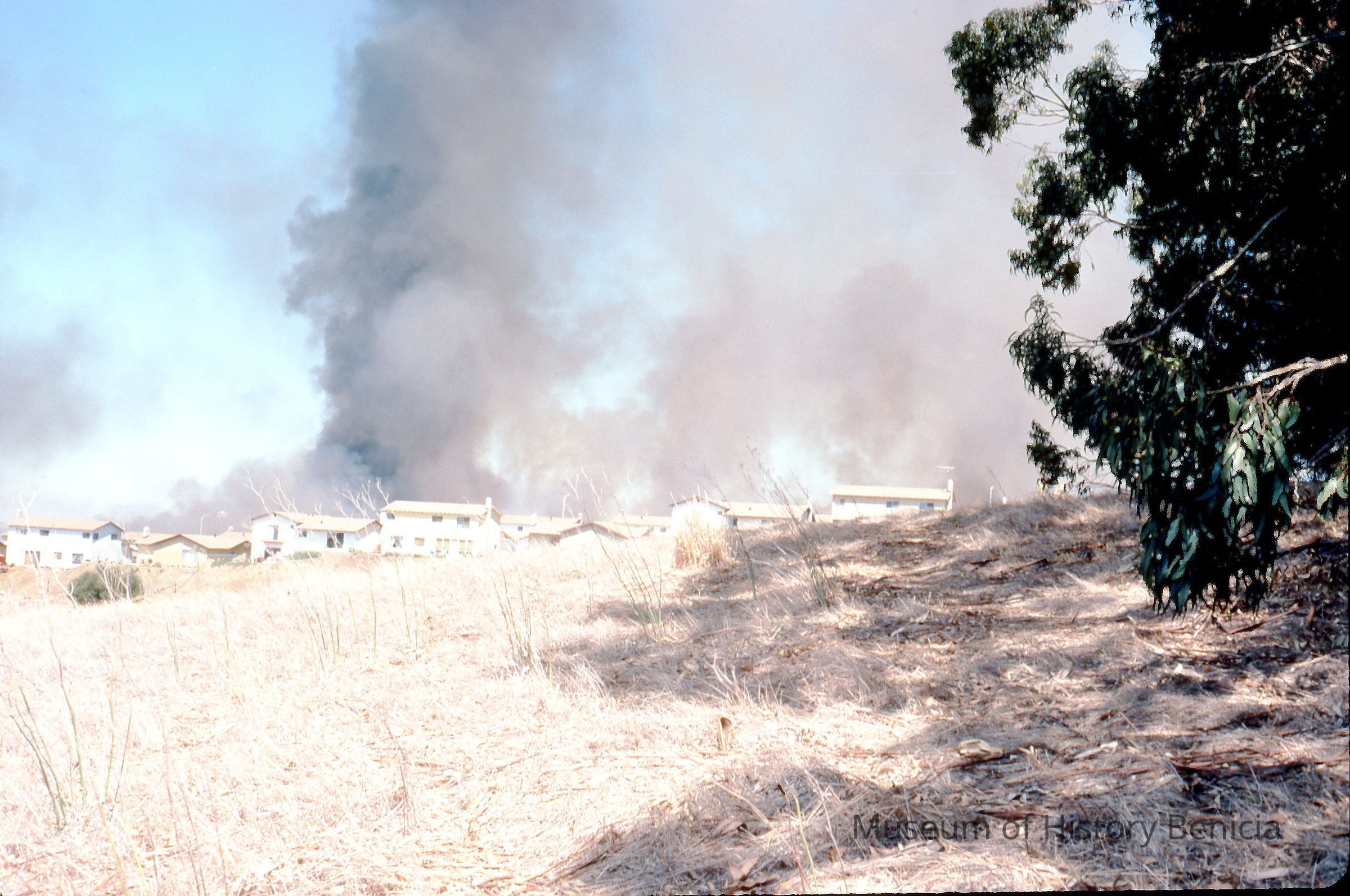 35mm Color Slide: field fire in Benicia; near Exxon (Valero) Refinery