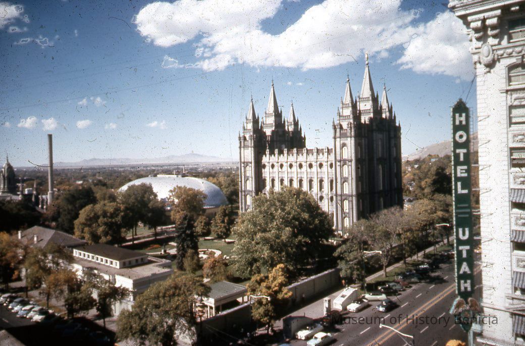 Commercial slide of Temple Square in Utah.