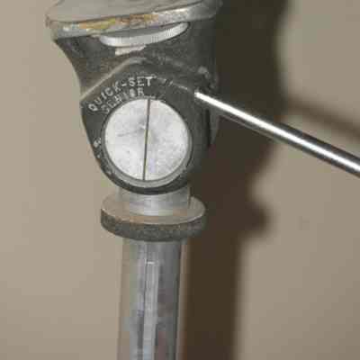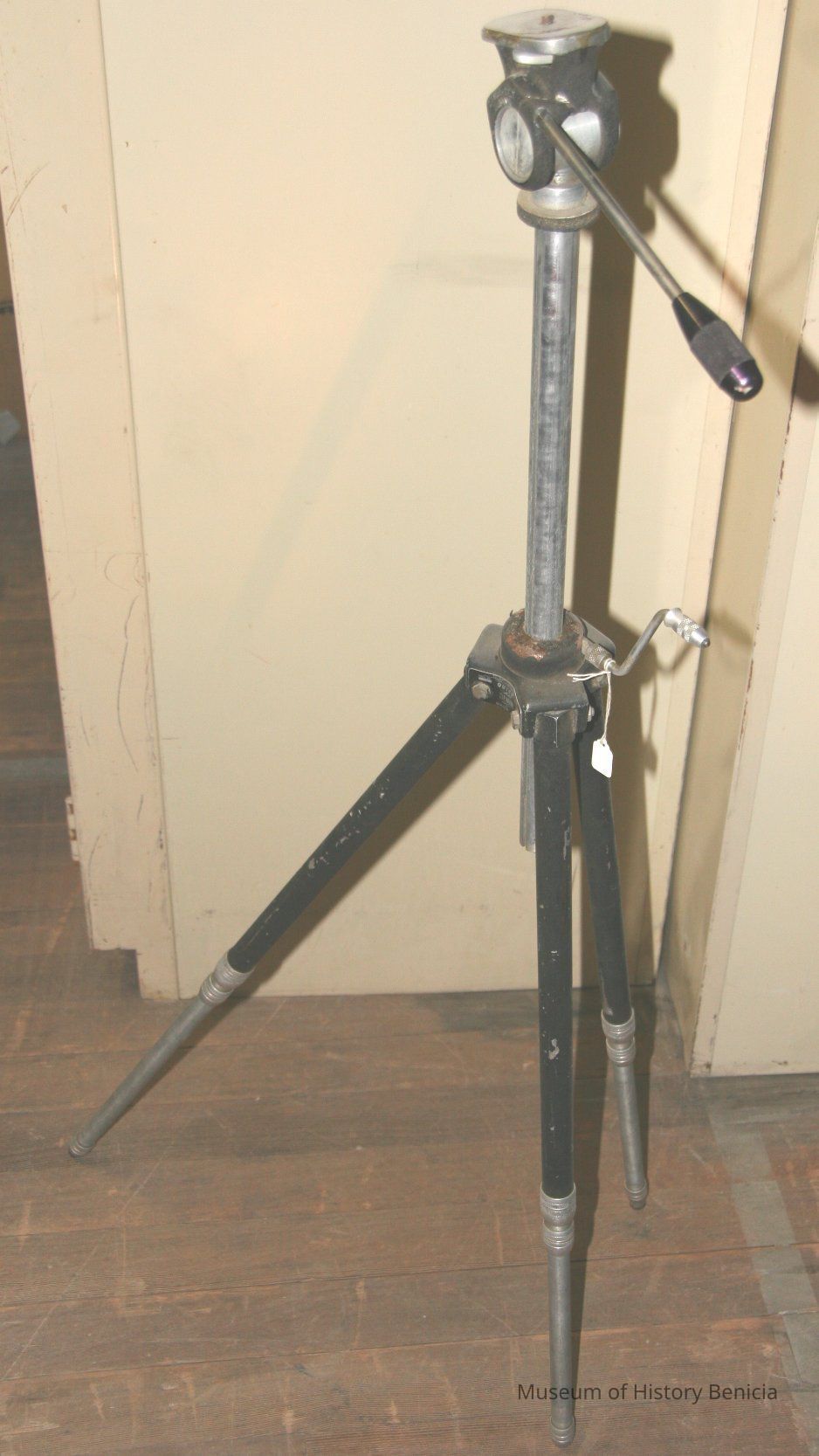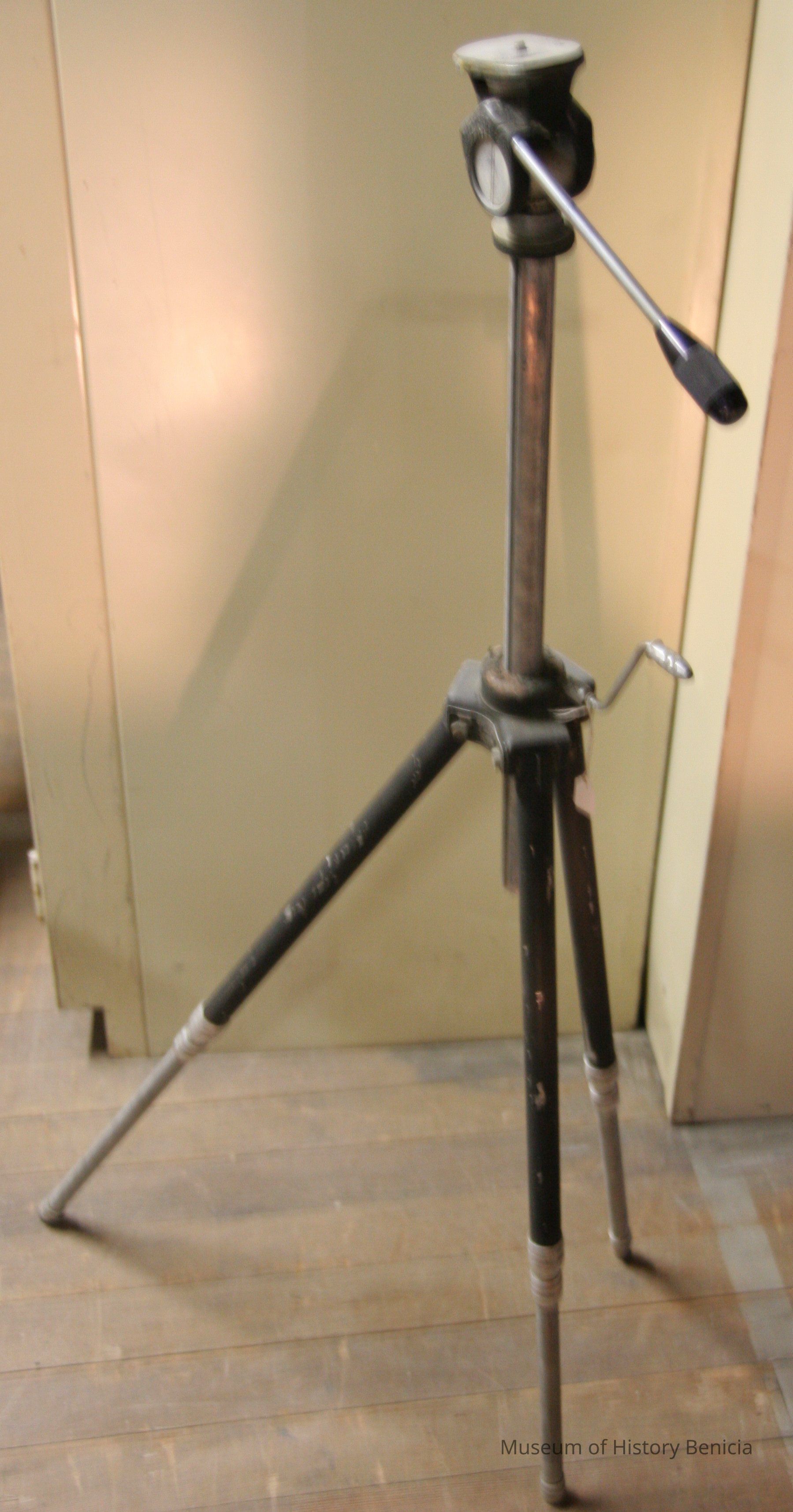 Three legged adjustable tripod to hold cameras. Quick-set Senior. (Folded)