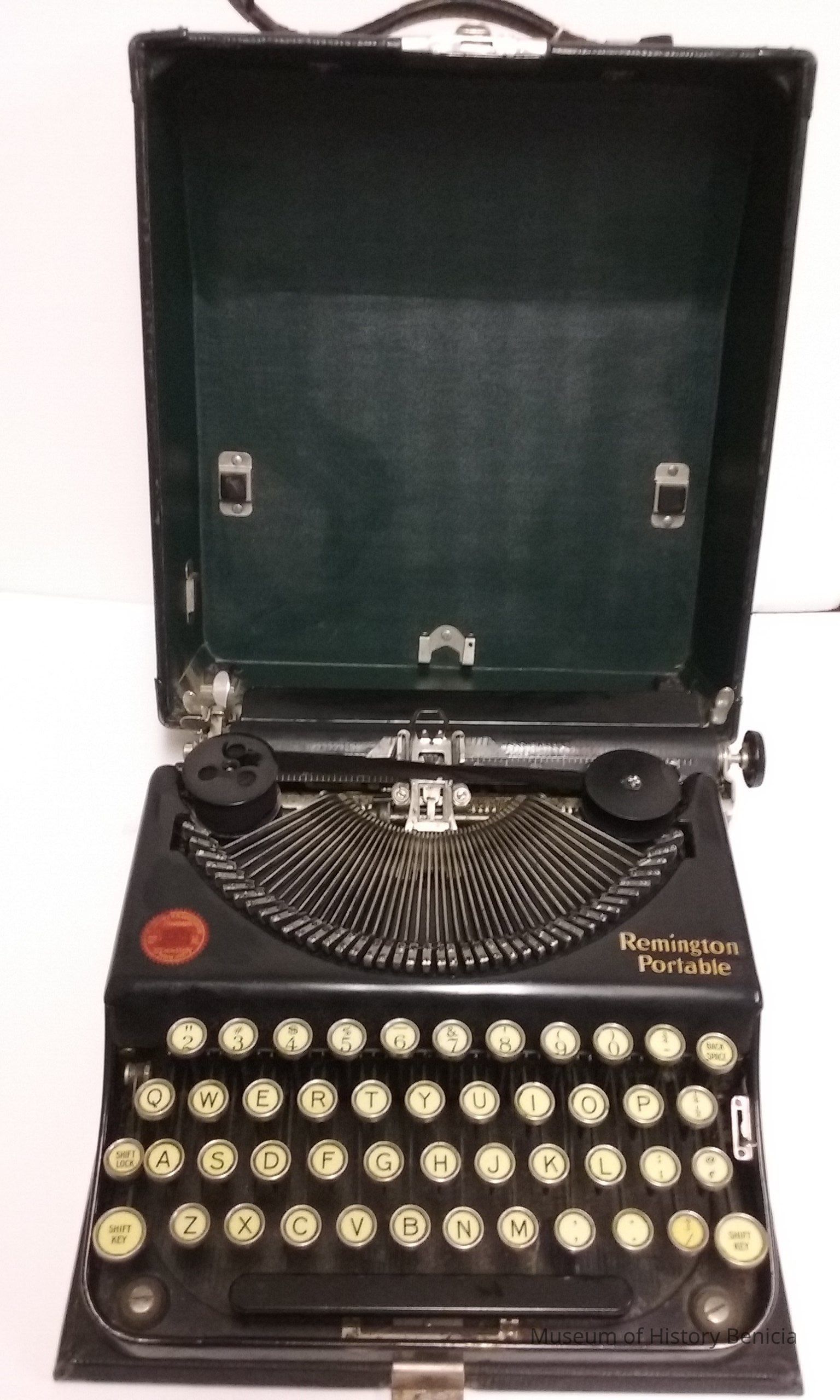Remington Portable-Black typewriter. Serial No. NM 31878 (located on back by right screw)