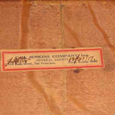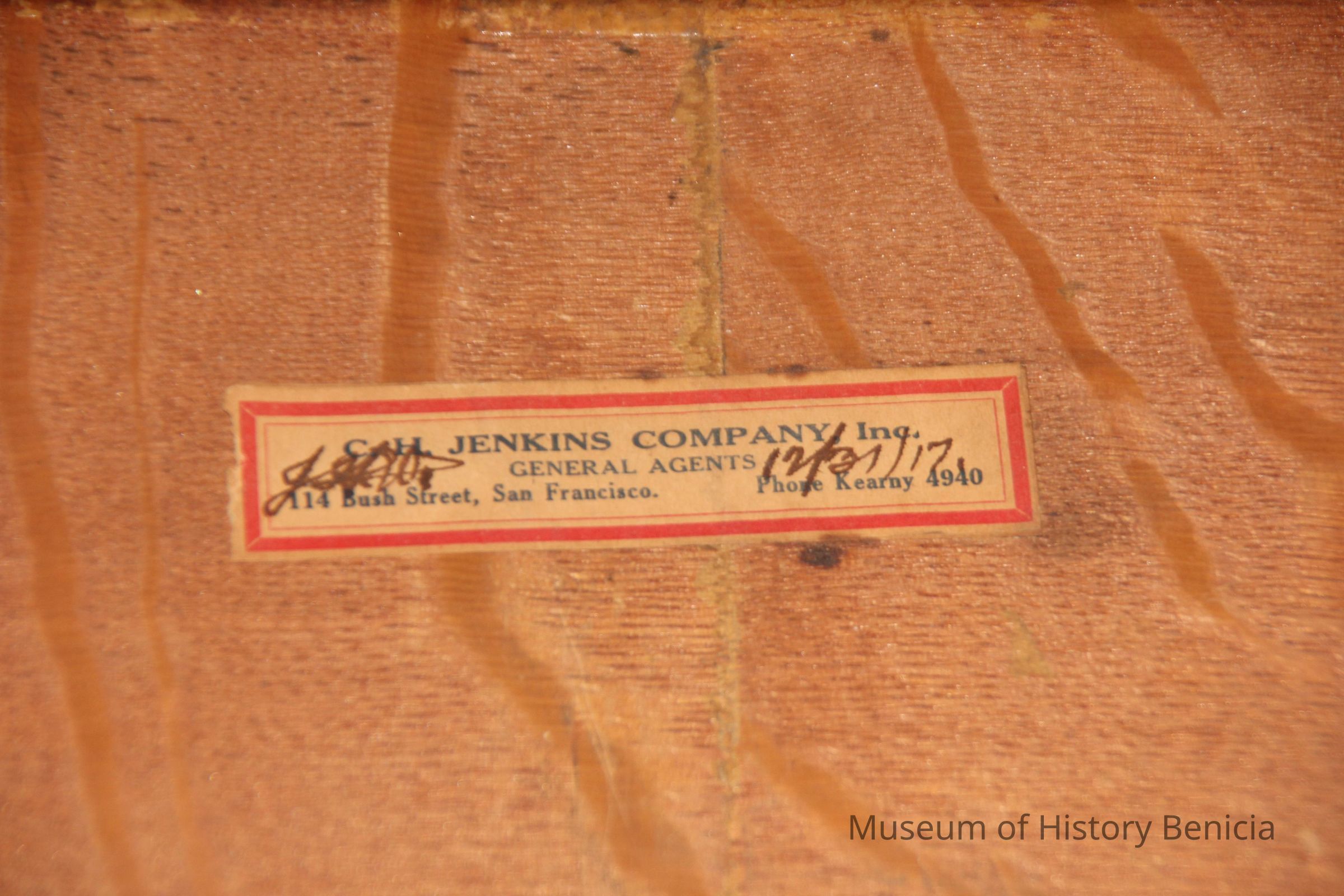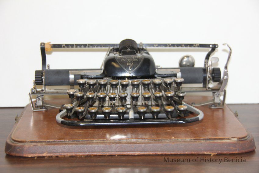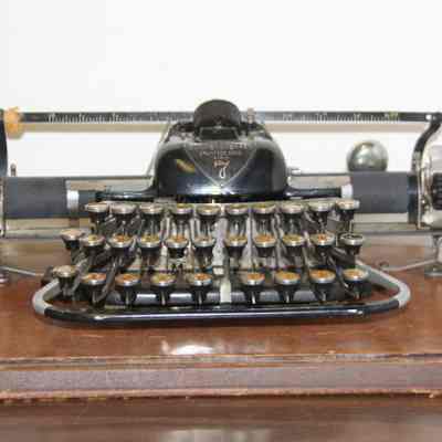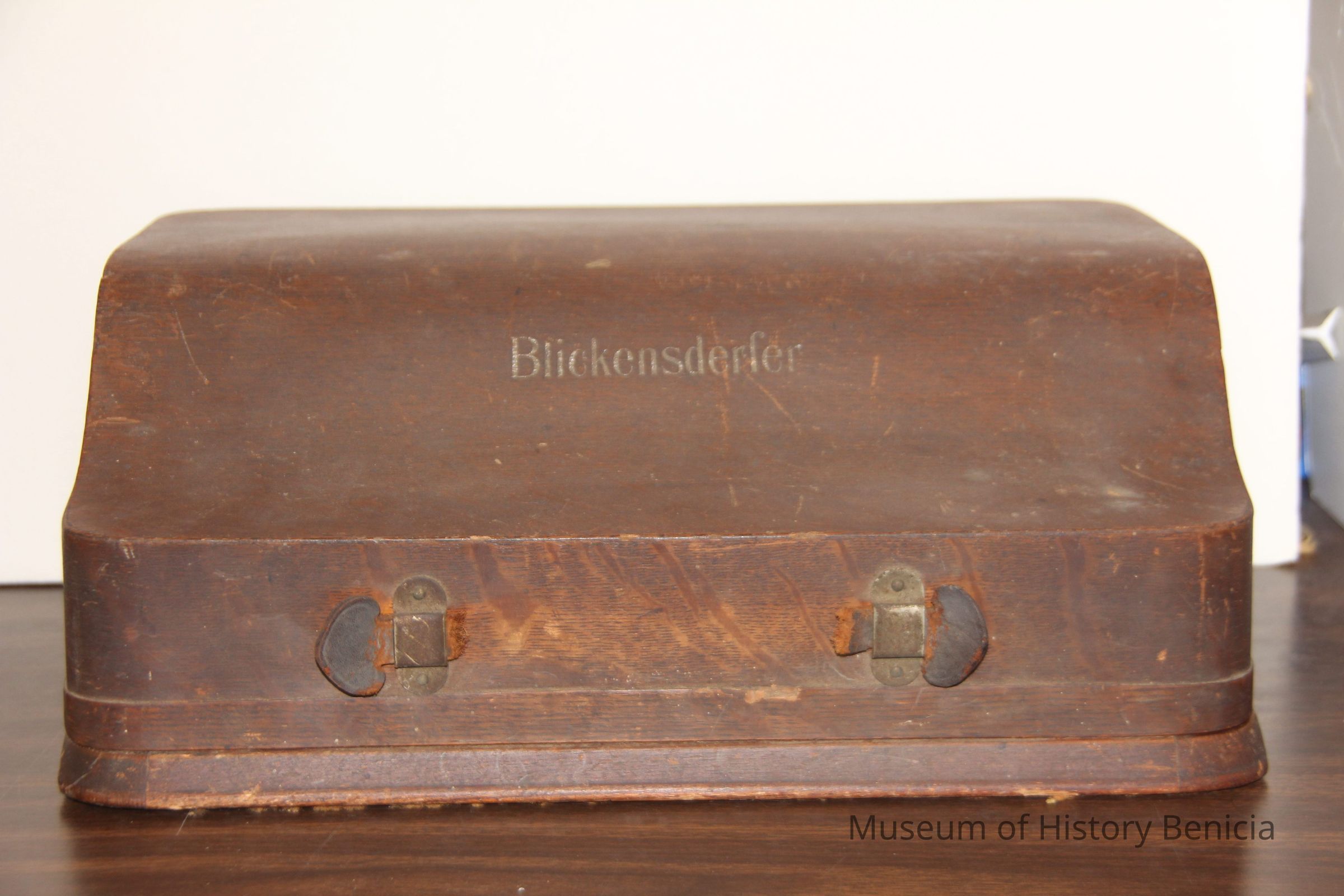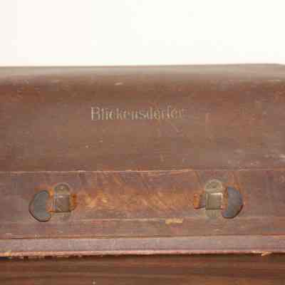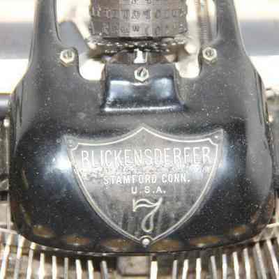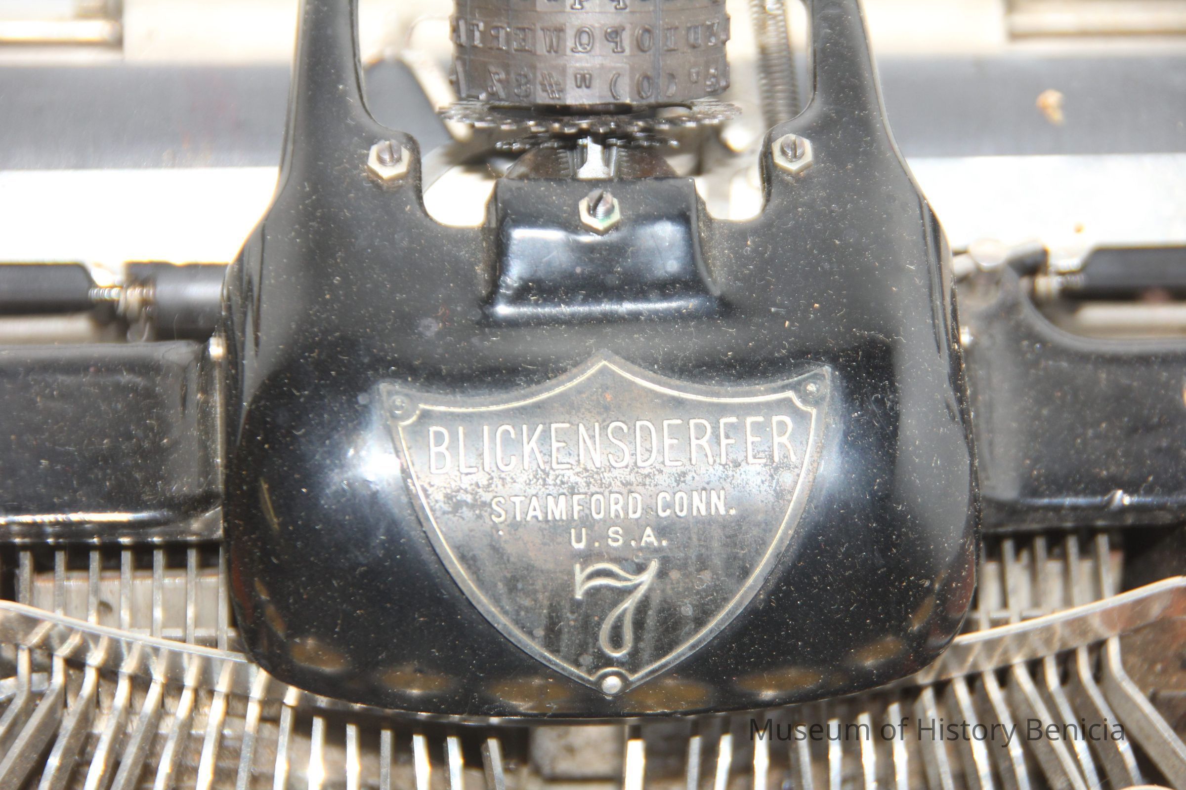 Old portable typewriter. Label on the inside says Jenkins Co Inc. General Agents SF Ca 114 Bush St. 12/31/1917. This is a portable typewriter with the type in a ball in the center that is used to create the text. It was manufactured by Blickensderfer. It is model No 7 made in Stamford, Conn. The model 7 was first made in 1897 and superceeded by the model 8 in 1908.Collection