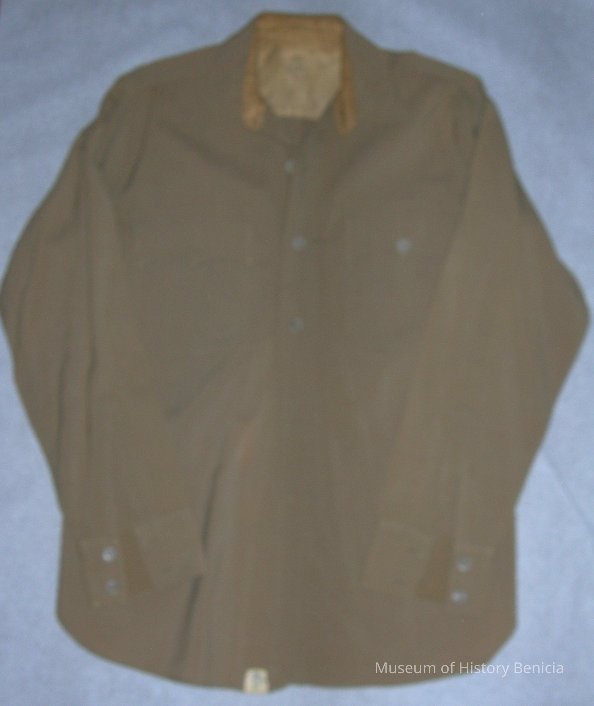 Label inside back of neck: Army Officer's Shirt / 100% Wool / Form Fitted / London Shrunk / Tailored by Jackson Raymond Co. Inc.