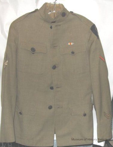 World War 1 band uniform. 1918-worn by Michael B. Osborne of the 319th Engineers. This uniform was worn by donor's grandfather.