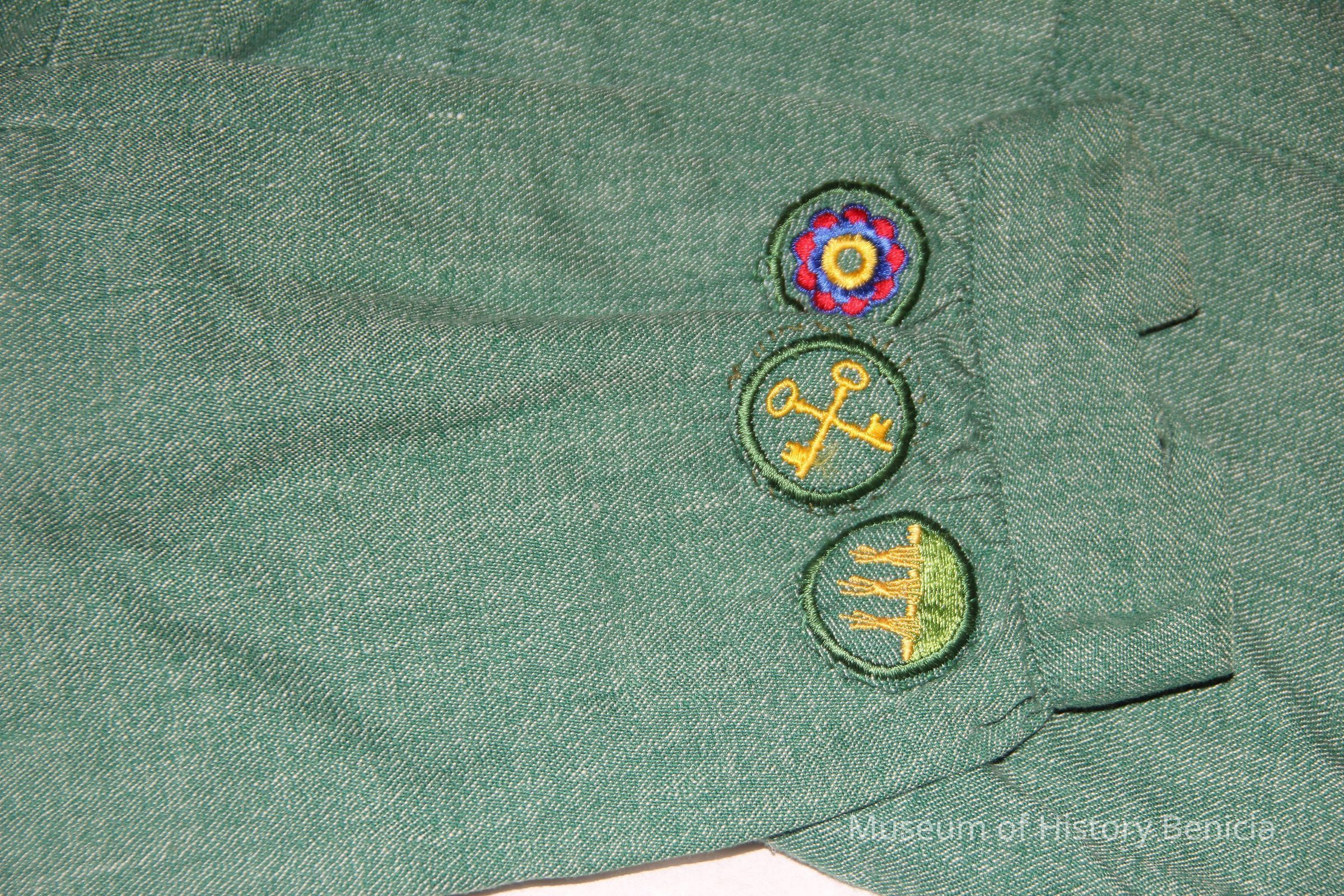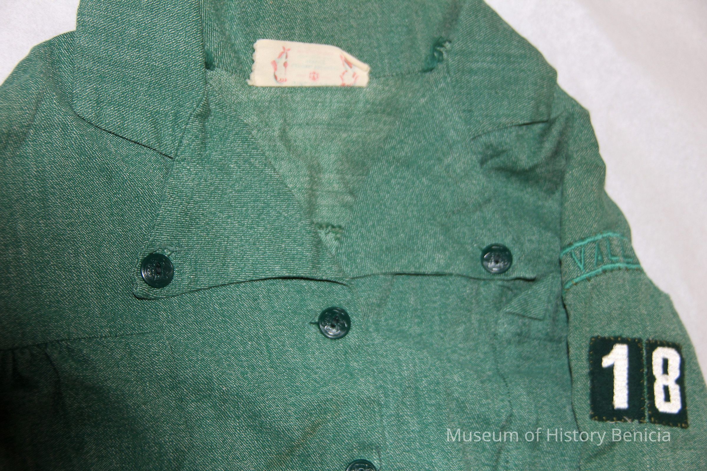maker label: "Girl Scouts, trade GS mark, National Equipment Service, New York City, Official Uniform"; button-down collar;