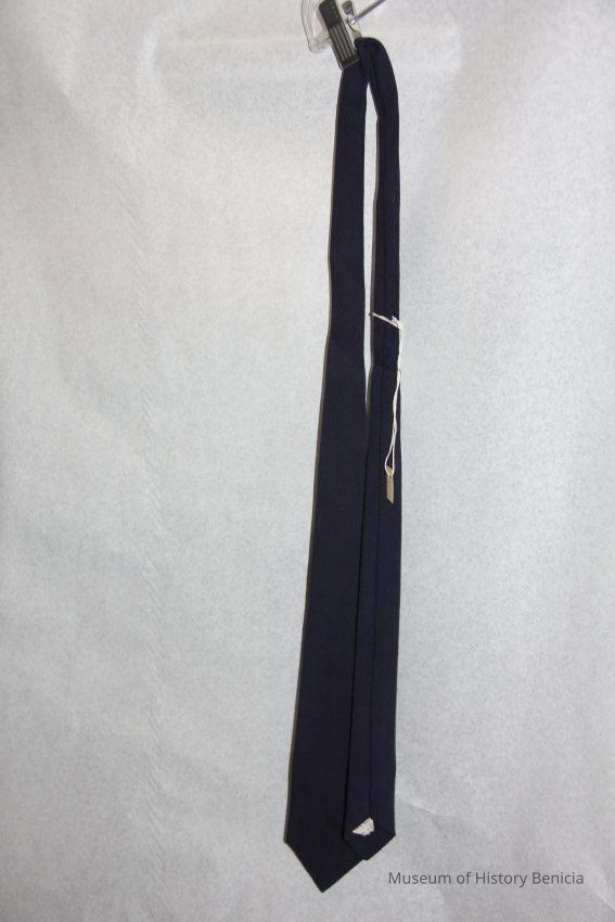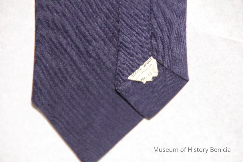 Blue tie . Made of 100% wool. It was worn by Charles (Chuck) Hull.