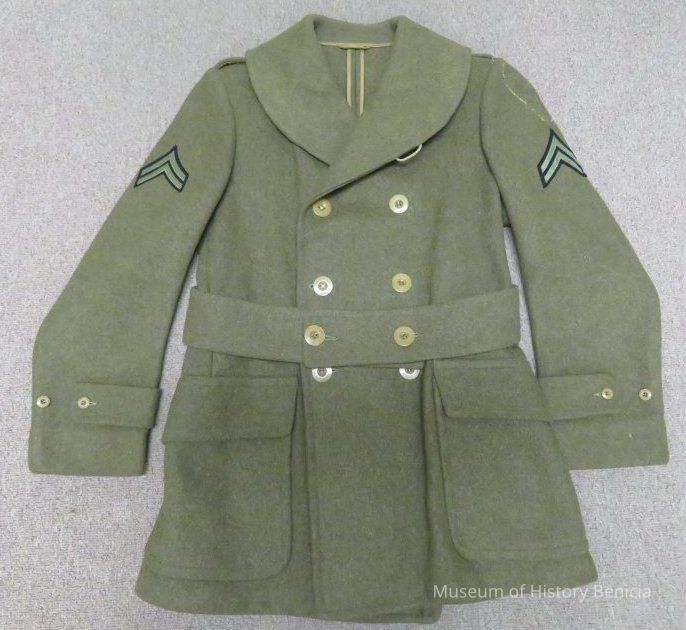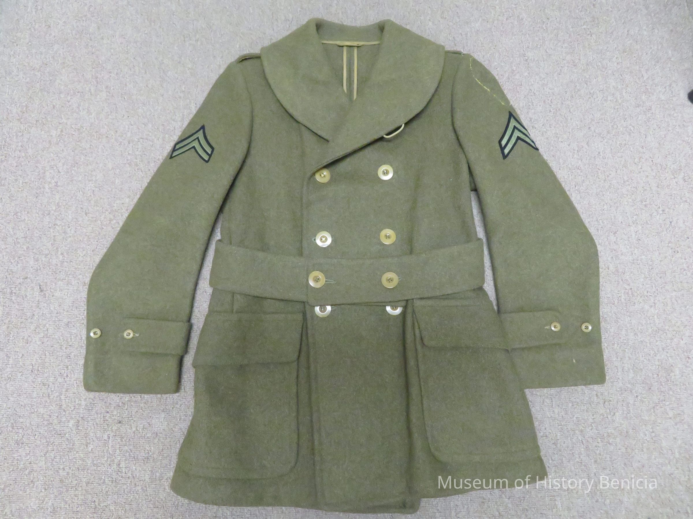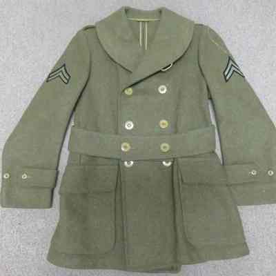 WWII US Army enlisted man's wool overcoat with Corporal ranks patch.