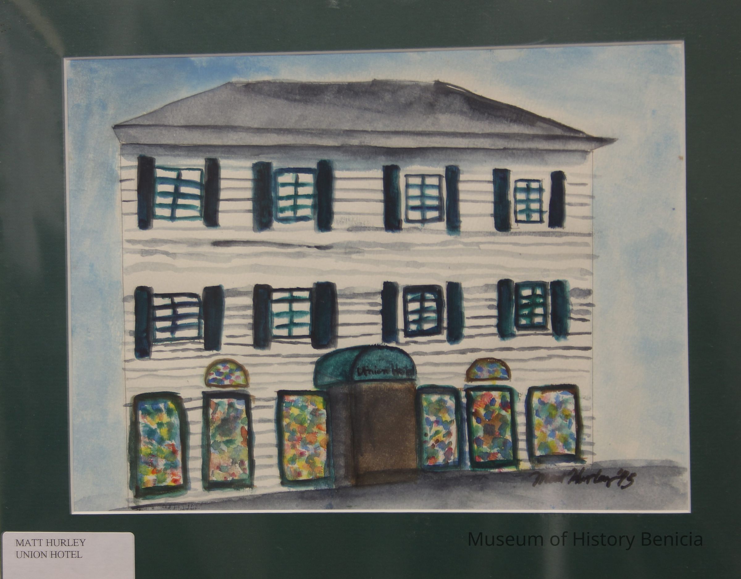 Painting of the Union Hotel (401 First Street) in watercolor by Matt Hurley, a Benicia Middle School student done in 1995 matted and mounted on foamcore