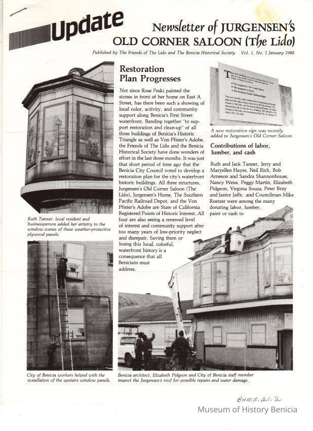 Two page information newsletter published by "The Friends of the Lido" and "The Benicia Historical Society"