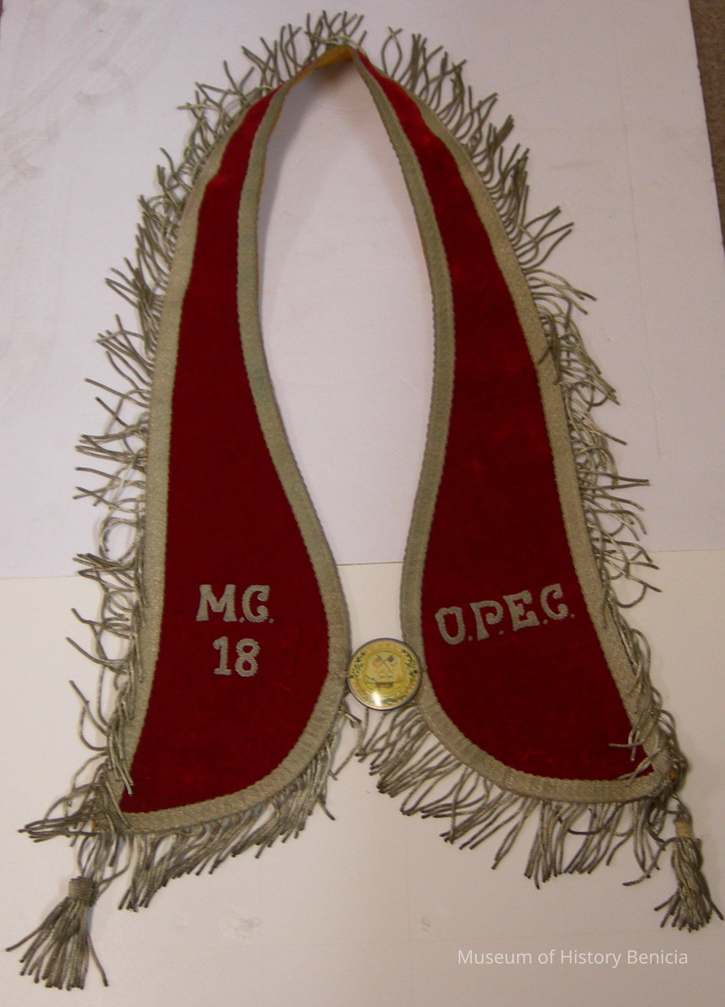 The item was part of the rituals of the U.P.E.C. Portuguese organization in Benicia. They were a fraternal organization and organized the annual Holy Ghost Parade and other events.
