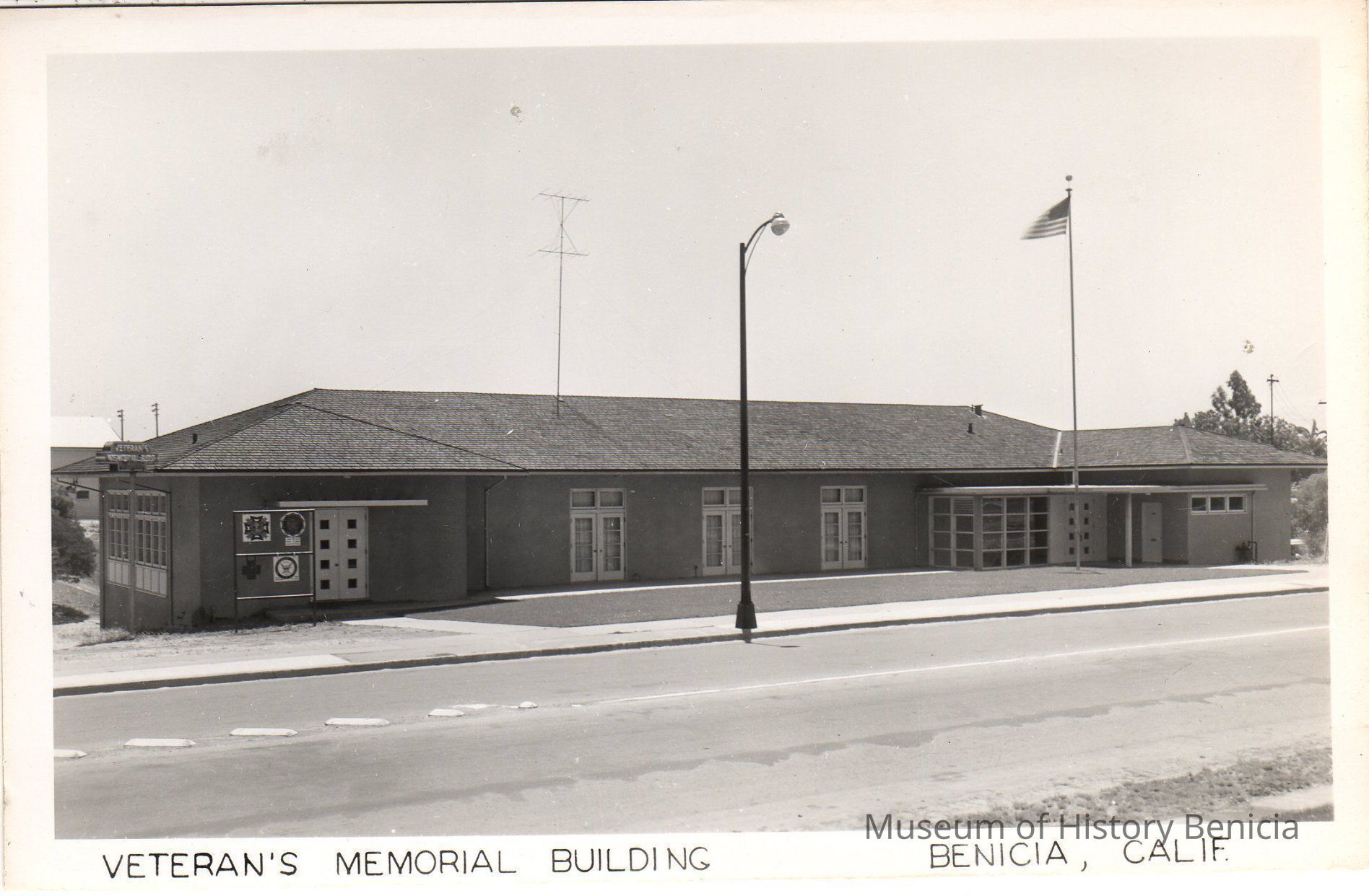 B/W image of Veteran's Memorial Building, First Street, Benicia, Calif.