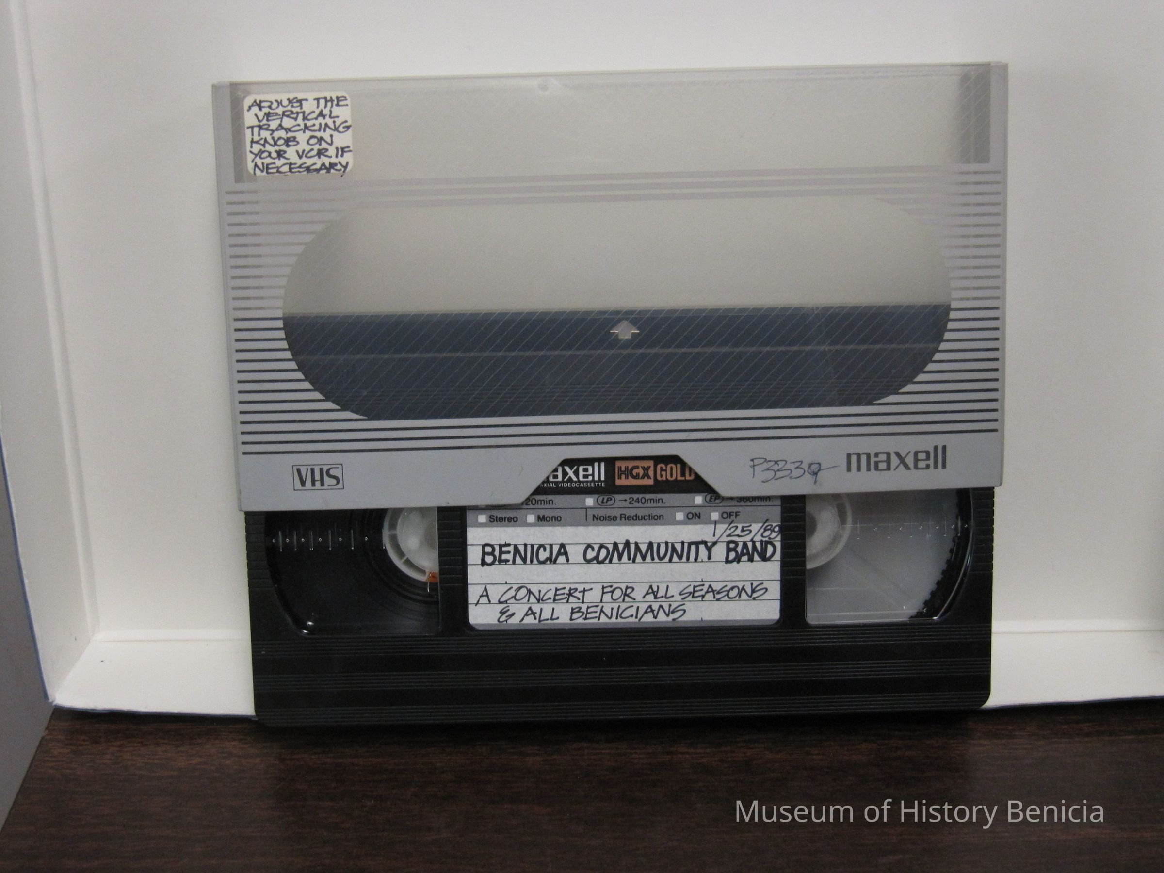 Video tape of the last concert performance of the Benicia Community Band, January 25, 1989. The 28-piece band played at Benicia High School Auditorium. Carlton Hall, conductor. Mayor Marilyn O'Rourke was Master of Ceremonies.Collection