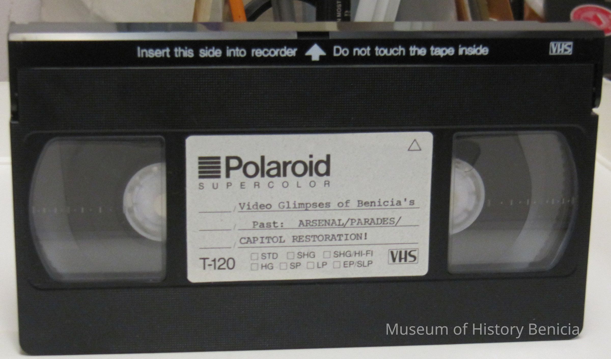 This is a 120 minute video cassette of the glimpses of Benicia's past. It includes Arsenal, Parades, and the Capitol restoration.