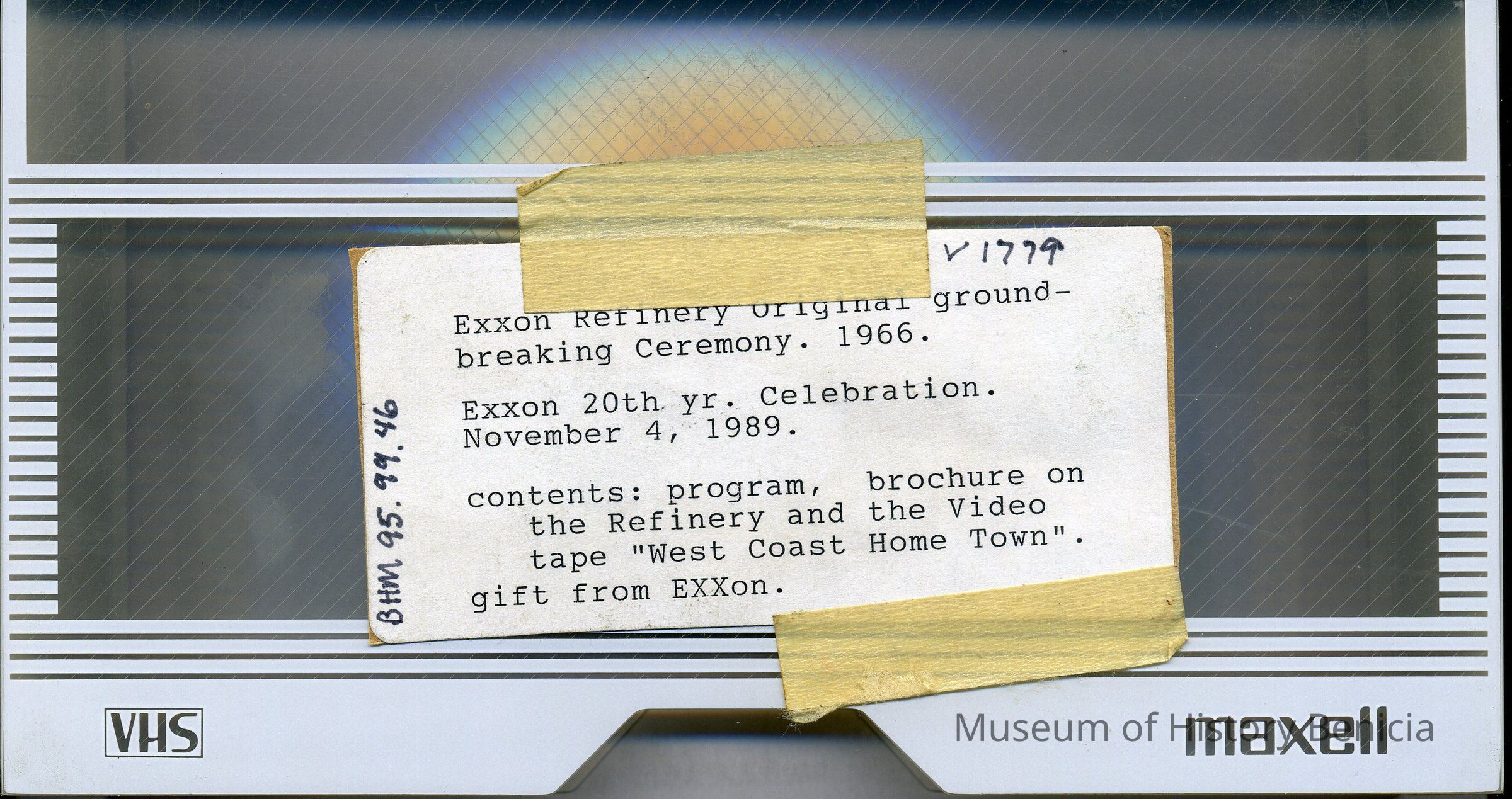 Video tape "West Coast Home Town" made for Exxon Refinery 20th Anniversary, 1989. Shows views of Benicia and Exxon Refinery.