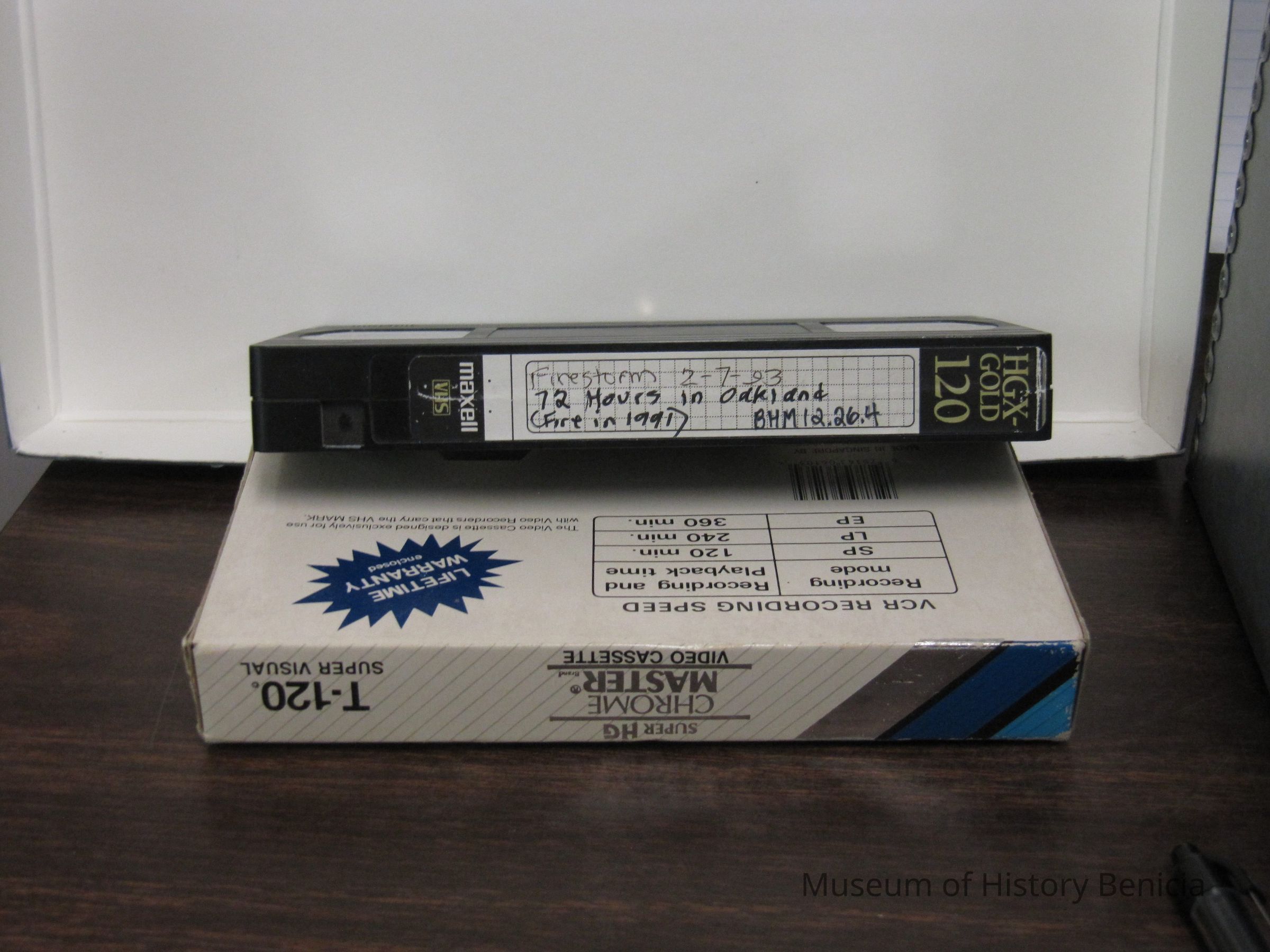 Videotape Cassette - "Firestorm" 72 Hours in Oakland made in 2-07-1993 - in cardboard slip-case. The Oakland Fire of 1991 is portrayed in this movie with Jill Clayburgh and LaVar Burton.Collection