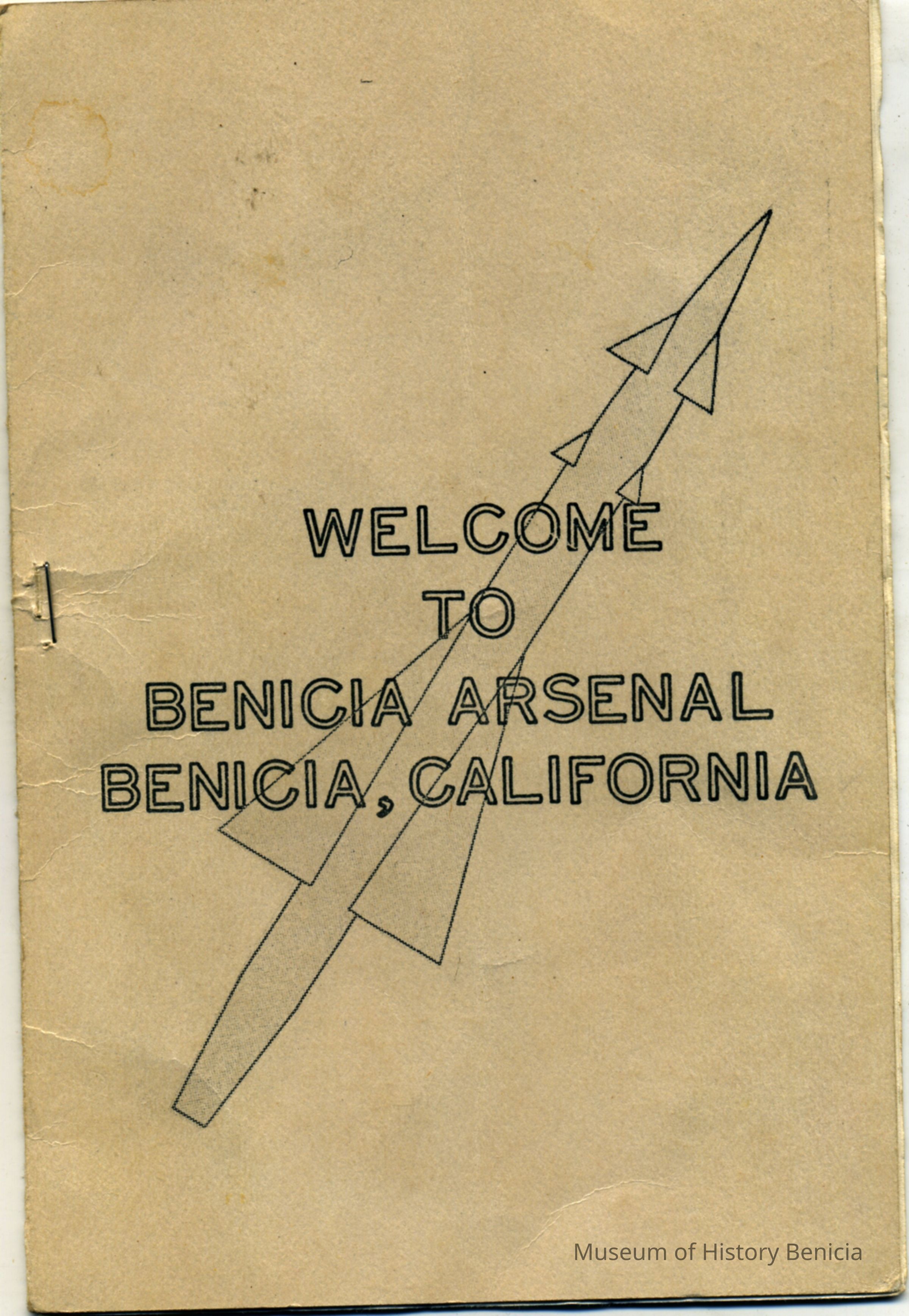 Guide book for open house at the arsenal in 1958. Picture of a missle on the front cover and "Welcome to Benicia Arsenal, Benicia, Ca.Collection