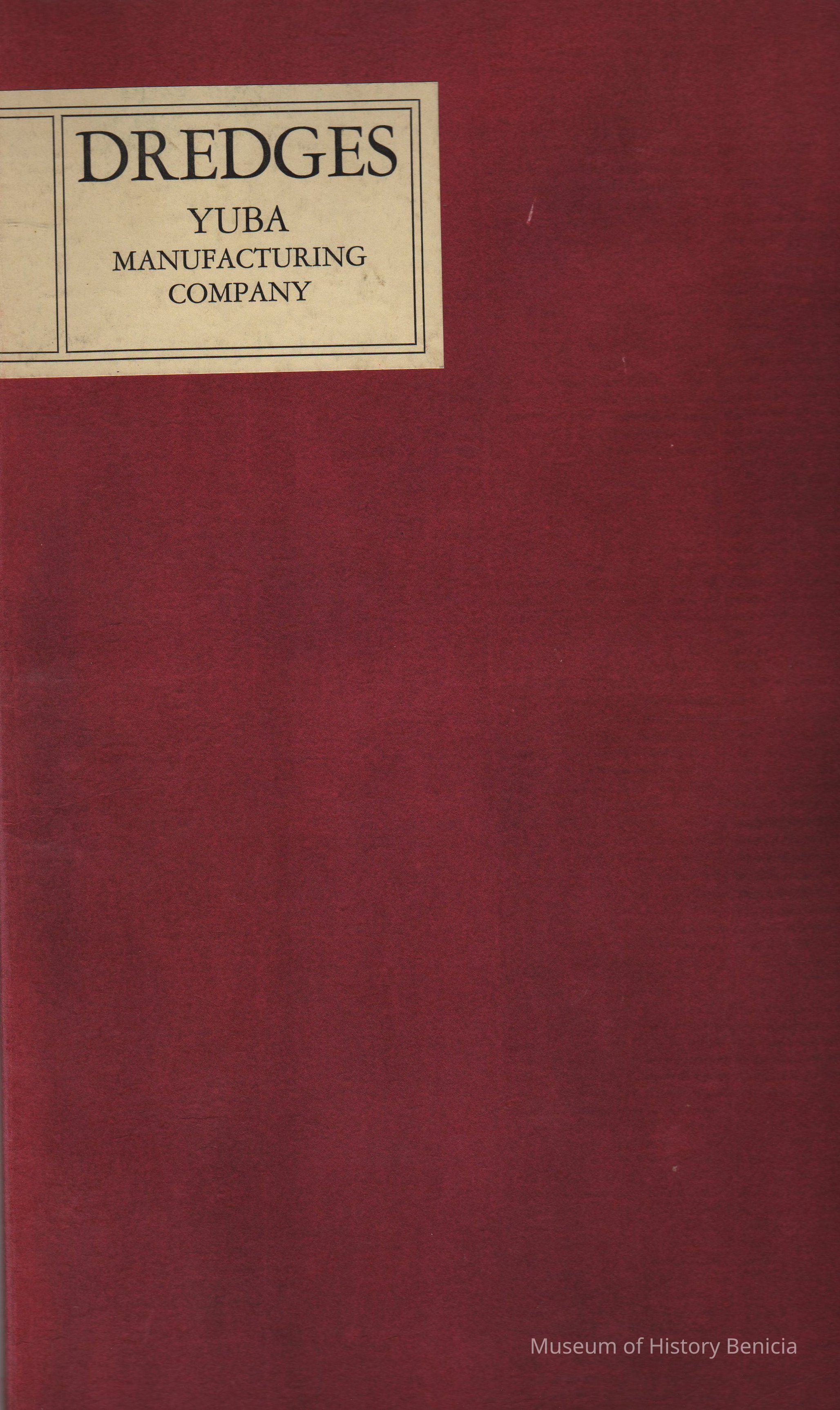"Dredges- Yuba Manufacturing Co. " Label on front. "Gold Dredges" The Part played by the Yuba manuf. co. in the great romance of dredging for Placer Gold, Platinum, and Tin/ Prepared by Samuel P. Johnson.Collection