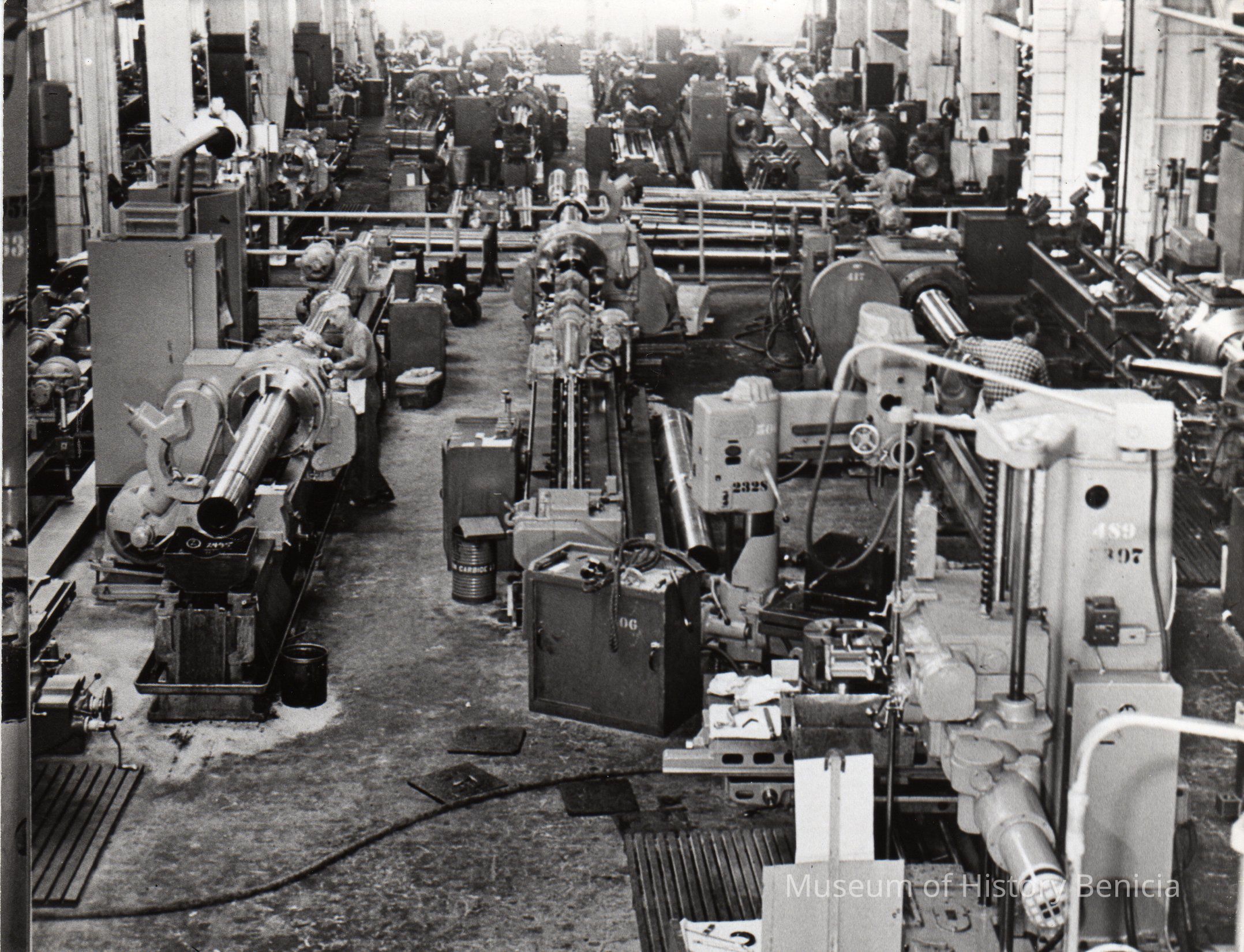 Top print: 155 mm howitzer tubes being machined, 1953.
