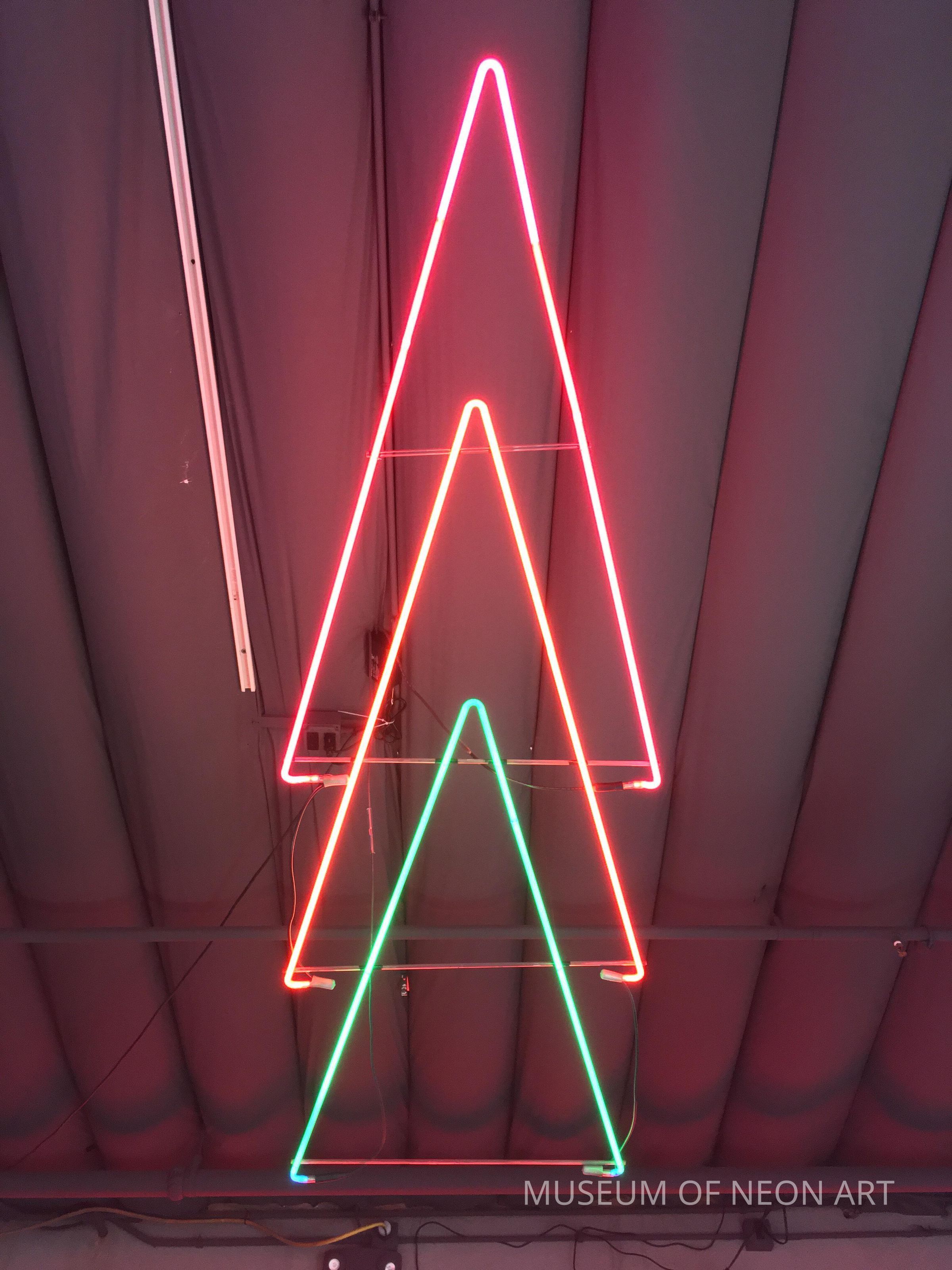3 V-shapes filled with neon and argon mercury, connected to glass pole.