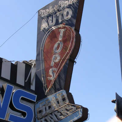 Animated top spins and "SEAT COVERS" flashes. From Redwood City, CA. Text: "Dick & Dale's AUTO / TOPS / SEAT COVERS"