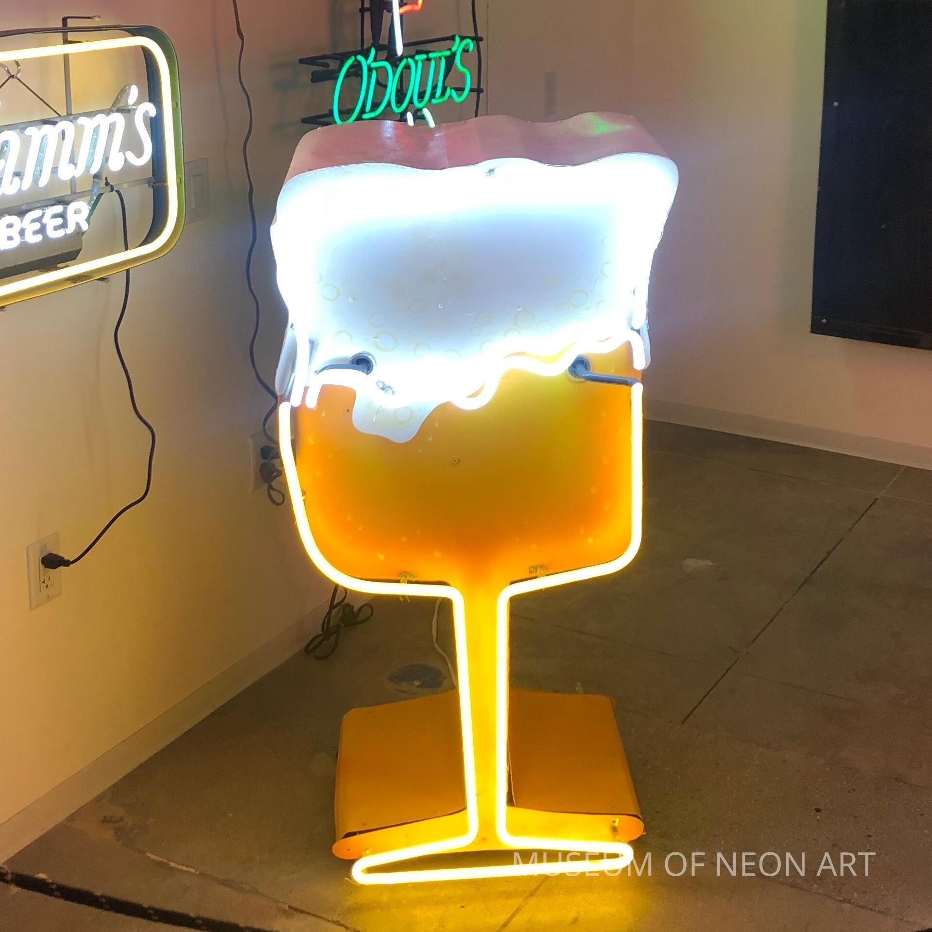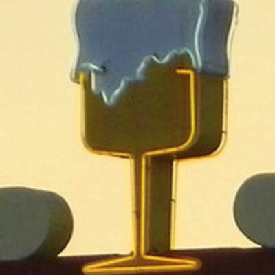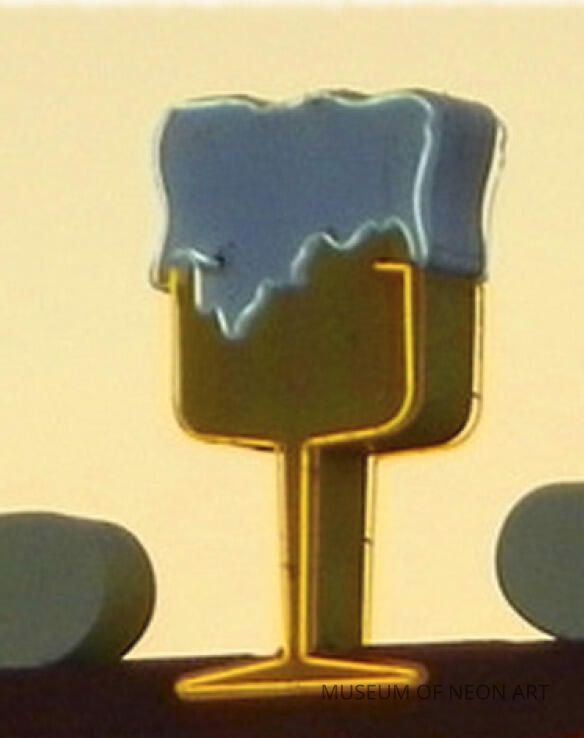 Although the California city from which it came is unknown, the beer glass is unmistakable. Me n Ed’s Pizza Parlor has a distinctive topper that could either be a paint brush or a beer glass. Yet its frothy suds give it away as a light beer – pun intended.