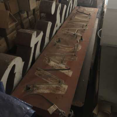 From the Bel-Air Motel in Fresno, CA. The "Walnut Room" sign from the motel is also in MONA's collection. Text: "VACANCY"