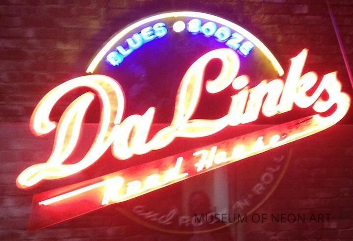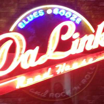 Text: "Da Links" / "Road House" / "BLUES" / "BOOZE" / "and ROCK 'N' ROLL"