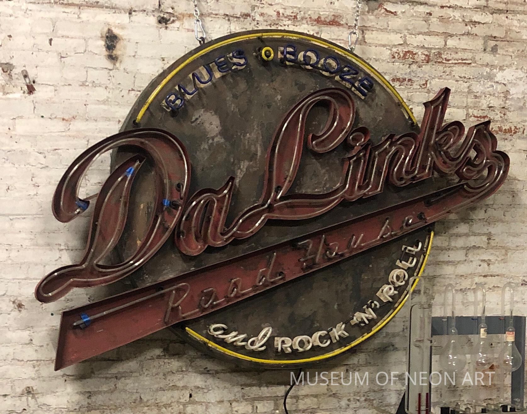 Text: "Da Links" / "Road House" / "BLUES" / "BOOZE" / "and ROCK 'N' ROLL"