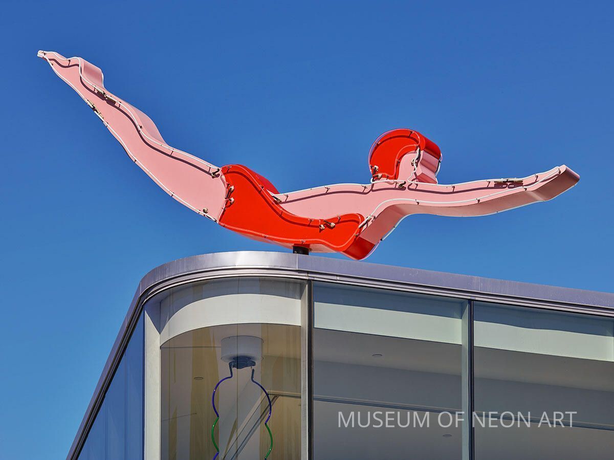 2014 – Replica of the diver created by Federal-Heath Sign Company and installed atop the Museum of Neon Art in Glendale, California.