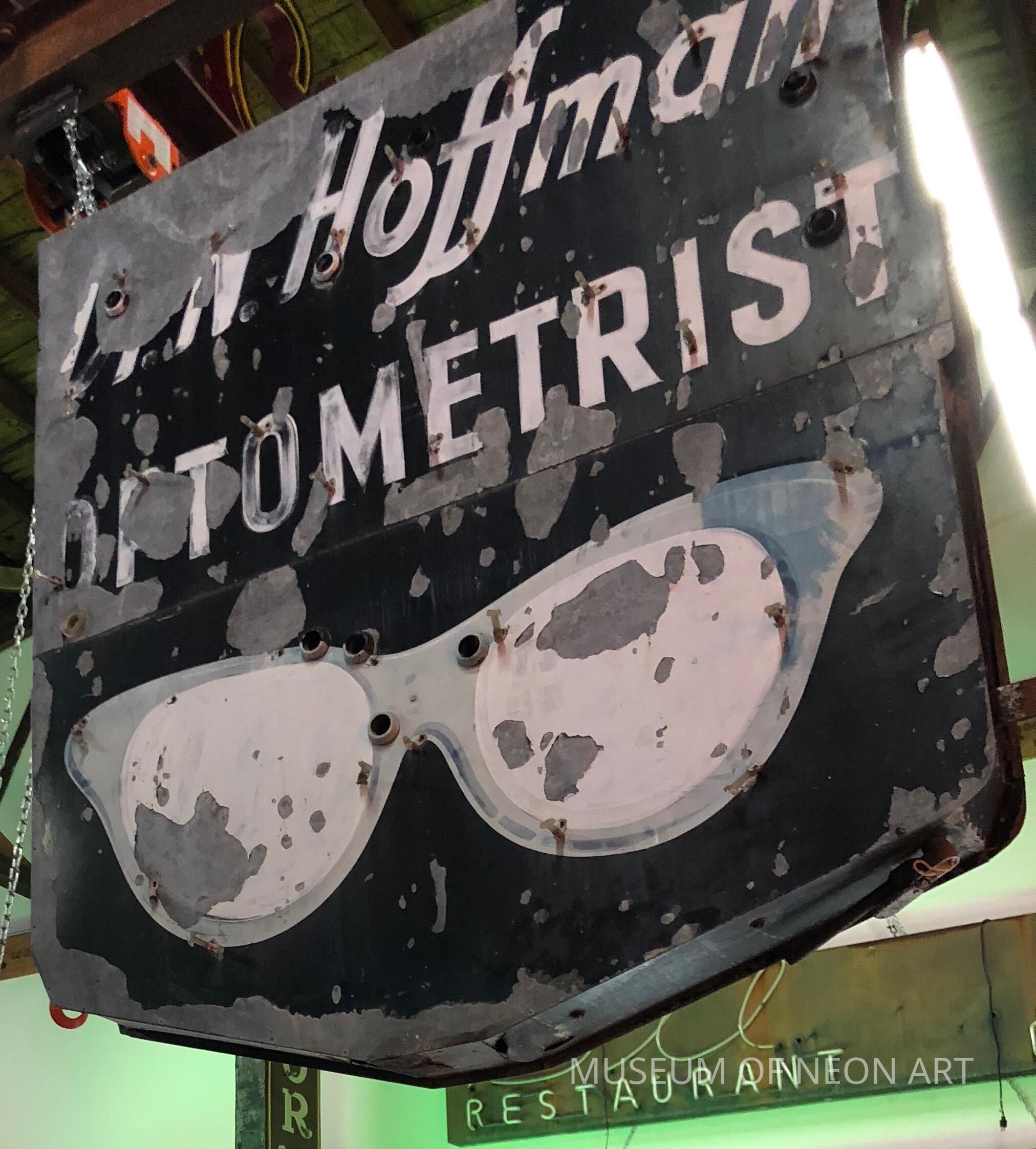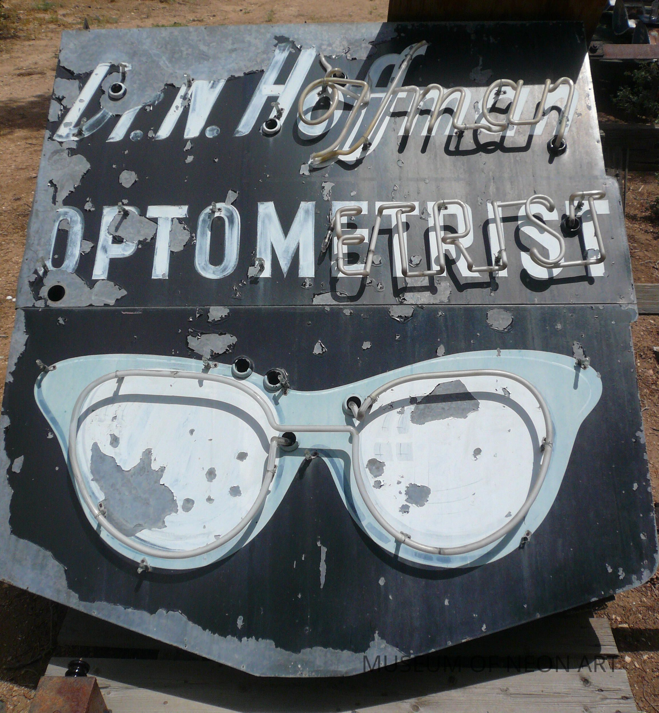 Vying for attention on bustling Ventura Boulevard, the sign’s neon, cateye glasses definitely stood out. The Studio City business kept its vintage sign and retro-looking neon eye wear glowing ’til its end in the early 2000s. All of its neighboring, vintage neon signs from the photo at left have been lost to time. Only Art’s Delicatessen remains on the boulevard.