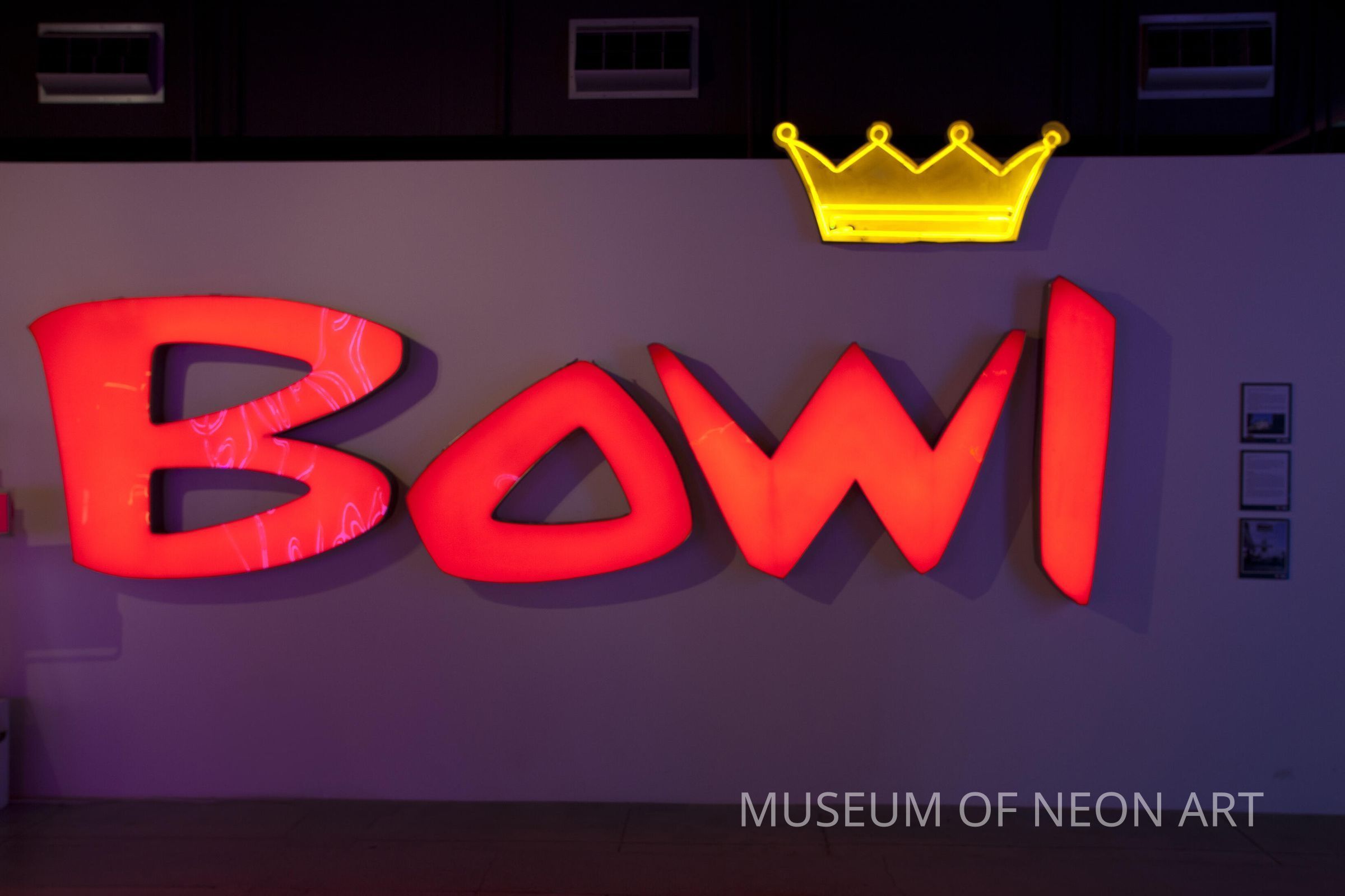 From Crenshaw district of Los Angeles, designed by Armet and Davis. MONA also has "COFFEE SHOP" sign from Holiday Bowl. Text: "Bowl"
