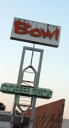 Due to its cultural and architectural significance, the Bowl’s Googie-style coffee shop was granted landmark status by the City of Los Angeles Cultural Heritage Commission and still exists today as a Starbucks coffee house. After a long preservation battle, the bowling alley itself was demolished in 2003 and replaced by a small shopping mall, the Coliseum Center. A portion of the 1958 Armet and Davis-designed signs were donated to the Museum of Neon Art by the property’s developers, Axiom Real Estate Investments, Inc.