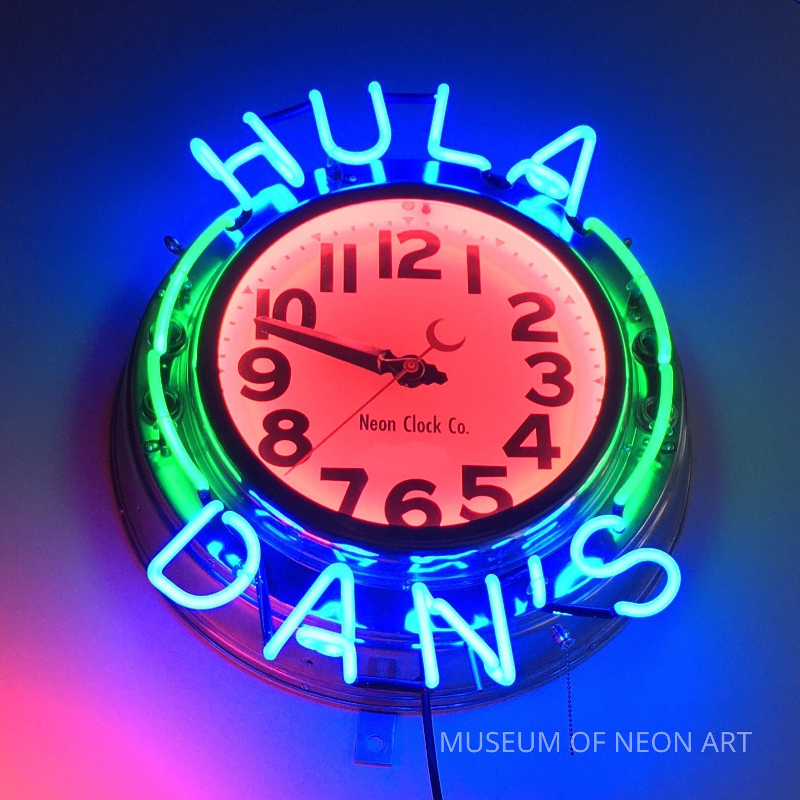Text: "HULA DAN'S" / "Neon Clock Co."