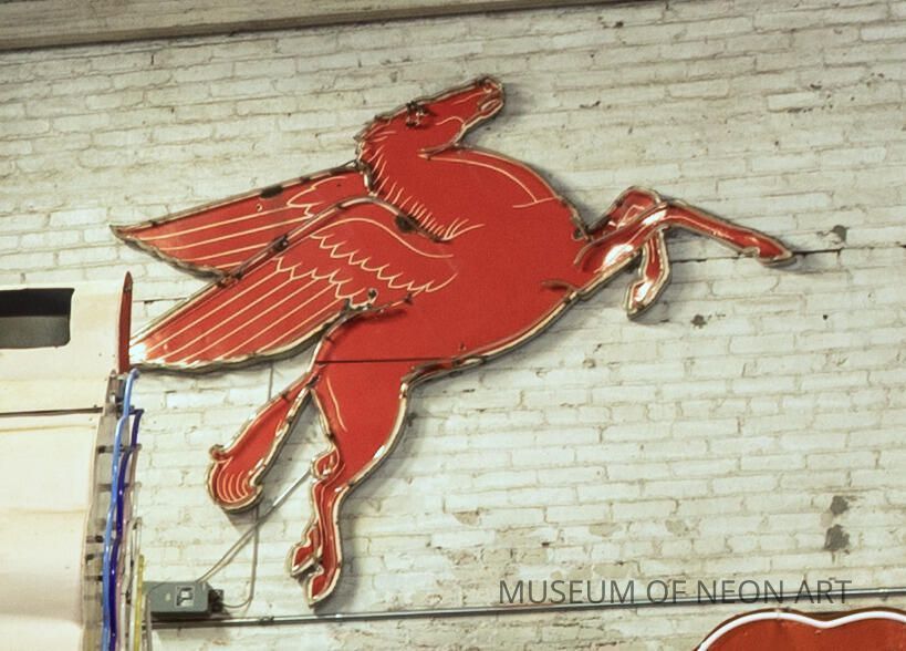 Pegasus logo sign from a Mobil gas station.