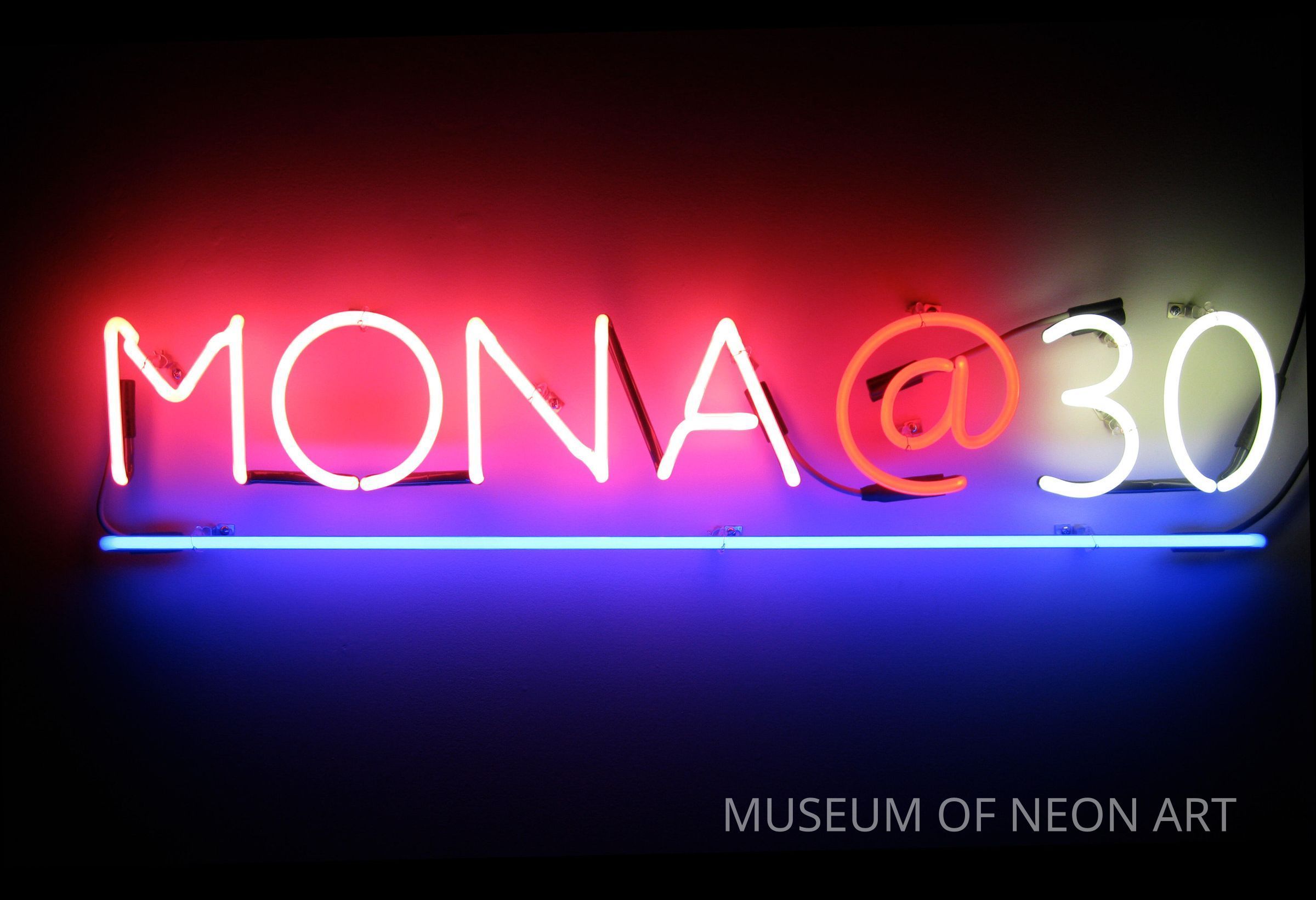 Skeletal neon sign commissioned by MONA for the Museum's 30th anniversary in 2011. Text: "MONA@30"