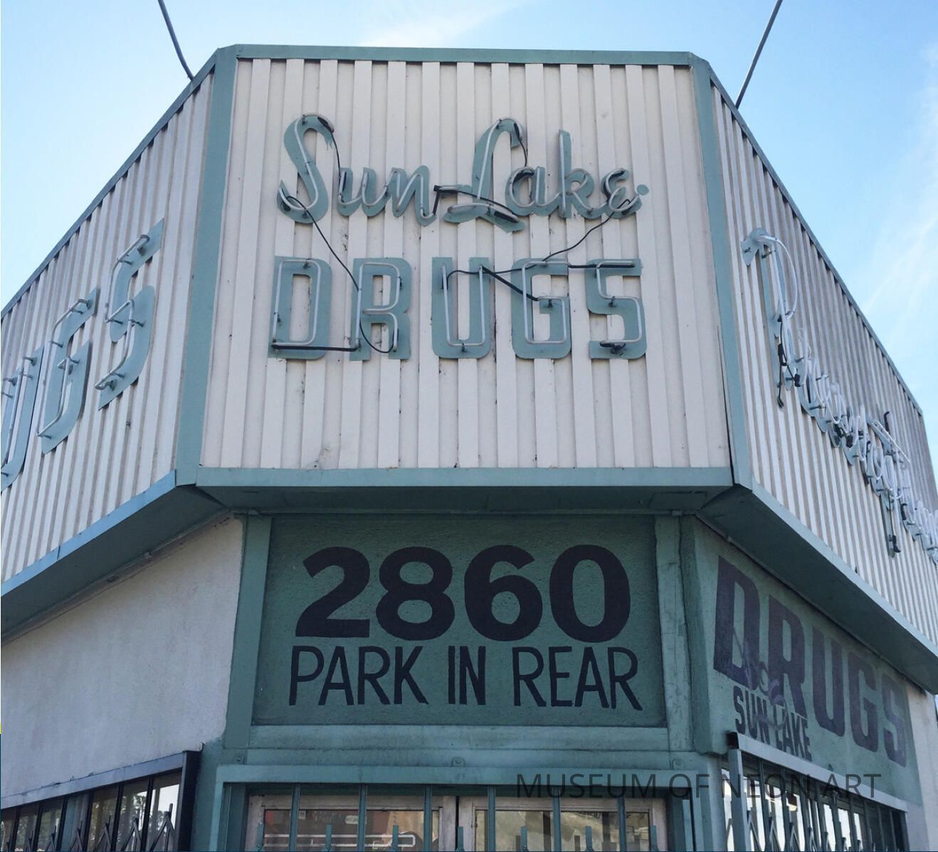 Among the last of the mom-n-pop pharmacies in Los Angeles, the closure of Sun-Lake Drugs was a sad day for the neighborhood. The corner store derived its Sun-Lake name from its location at 2860 Sunset Boulevard in the Silver Lake area and had a facade decked out in neon and the large words “Drugs” in a sans-serif design and “Prescriptions” in a period-appropriate, mid-century script.