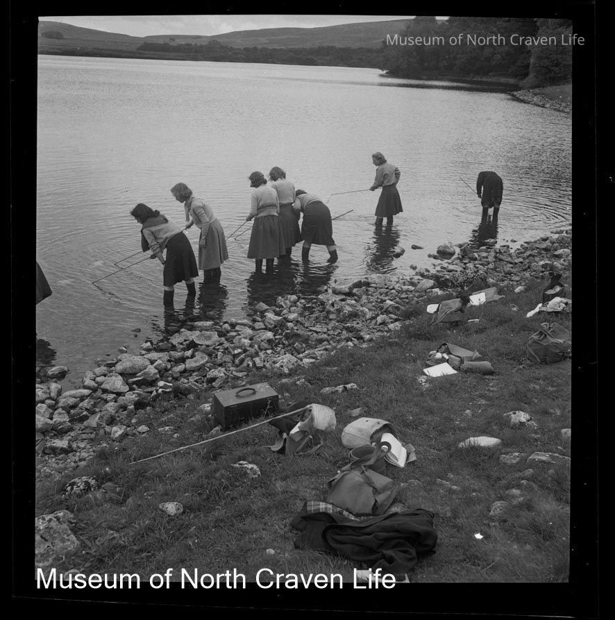 A 2 ¼" gelatin silver acetate film negative. A view of a Field Study Group of people on the shoreline of Malham TarnCollection