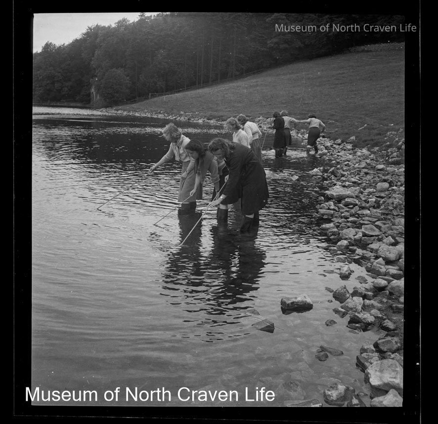 A 2 ¼" gelatin silver acetate film negative. A view of a Field Study Group of people on the shoreline of Malham TarnCollection