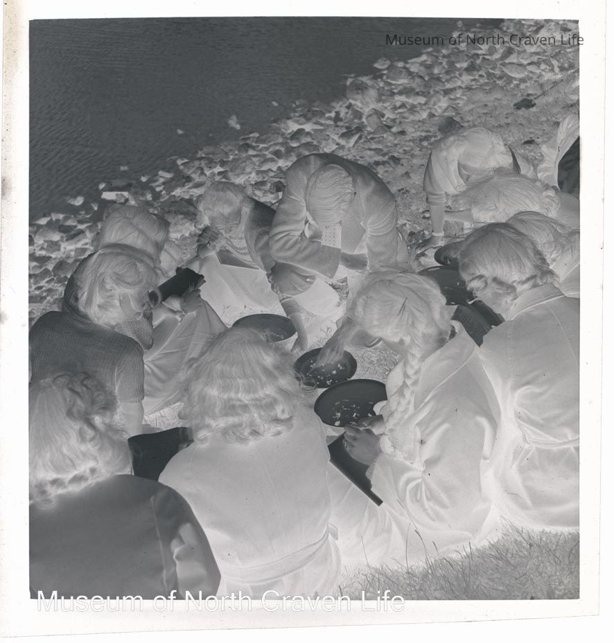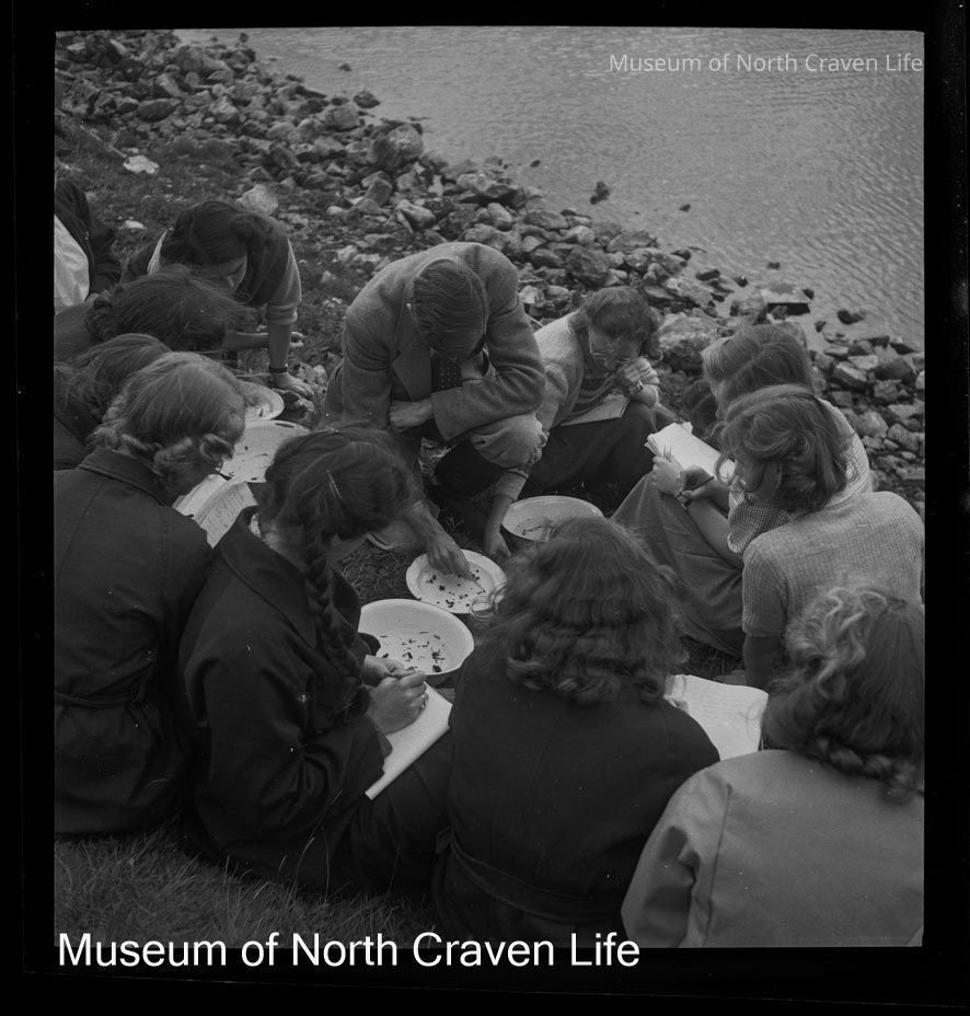 A 2 ¼" gelatin silver acetate film negative. A view of a Field Study Group of people on the shoreline of Malham TarnCollection
