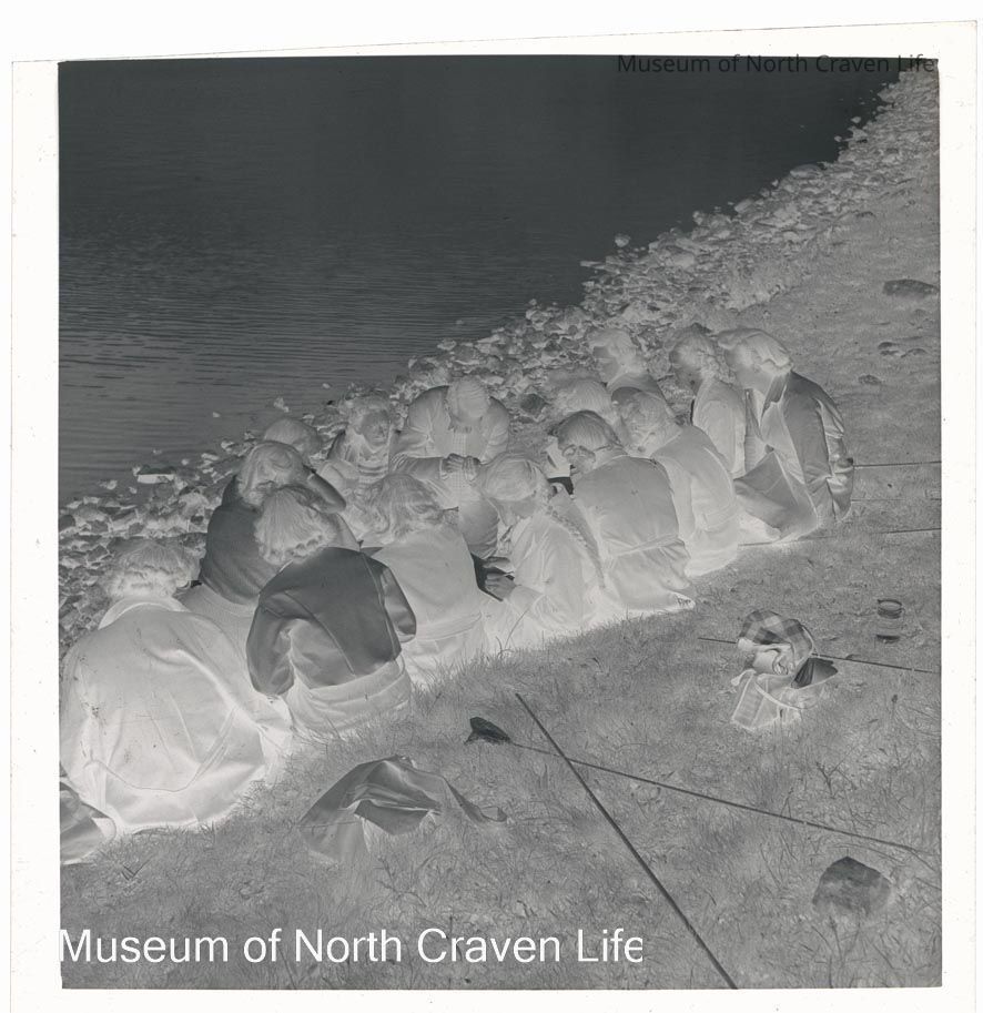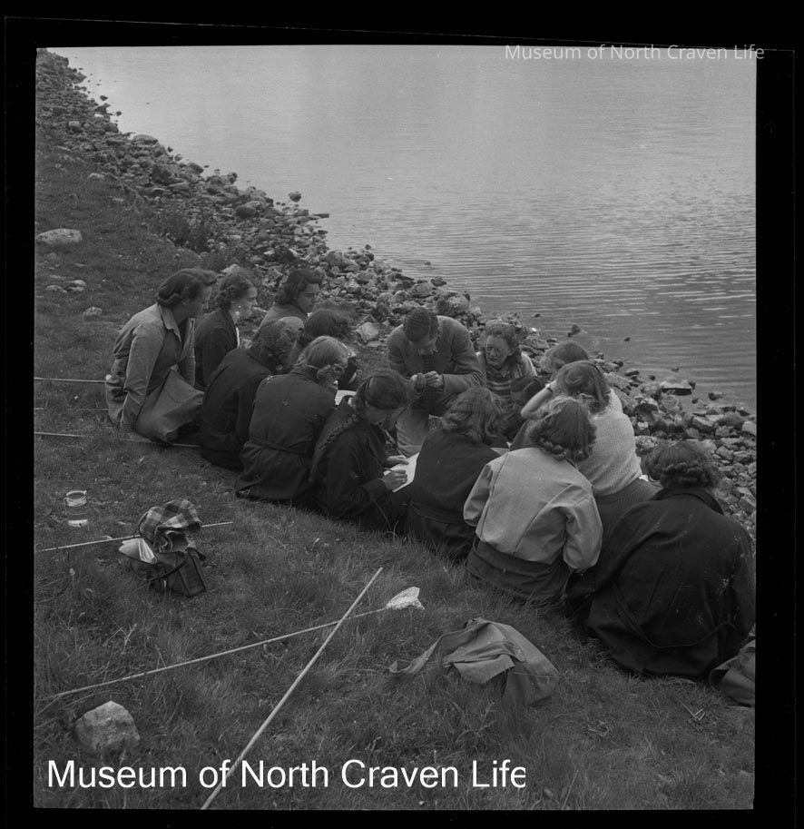 A 2 ¼" gelatin silver acetate film negative. A view of a Field Study Group of people on the shoreline of Malham TarnCollection