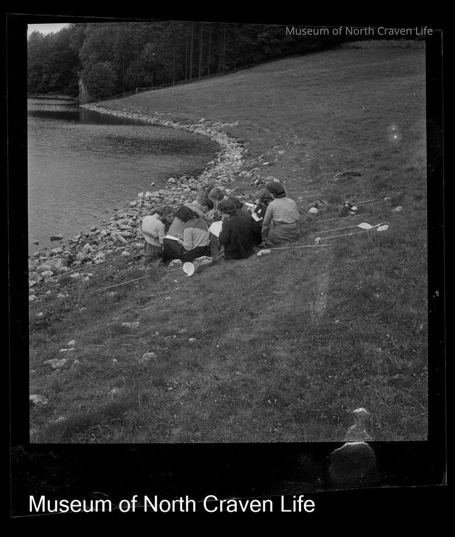 A 2 ¼" gelatin silver acetate film negative. A view of a Field Study Group of people on the shoreline of Malham TarnCollection