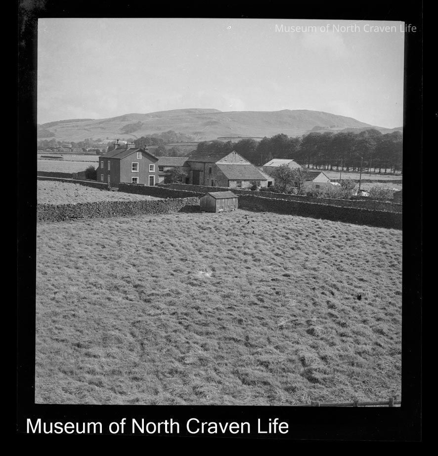 A 2 ¼" gelatin silver acetate film negative. A view of Gildersleets (Giggleswick) across mown hay fieldCollection