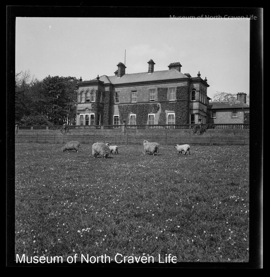 A 2 ¼" gelatin silver acetate film negative. A view of Newfield Hall, Calton (Malhamdale), across fields with sheep in the foregroundCollection