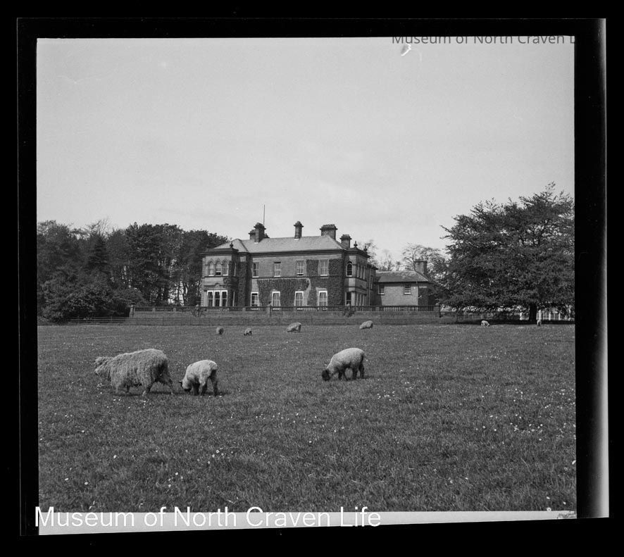 A 2 ¼" gelatin silver acetate film negative. A view of Newfield Hall, Calton (Malhamdale), across fields with sheep in the foregroundCollection