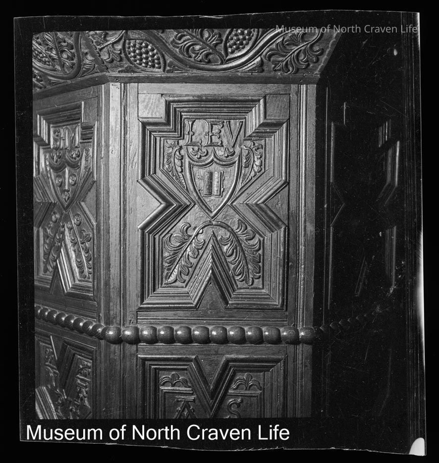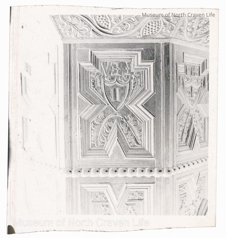 A 2 ¼" gelatin silver acetate film negative. A view of panels of the three decker 17C pulpit in the church of St Alkelda in Giggleswick (https://historicengland.org.uk/listing/the-list/list-entry/1157303?section=official-list-entry)Collection