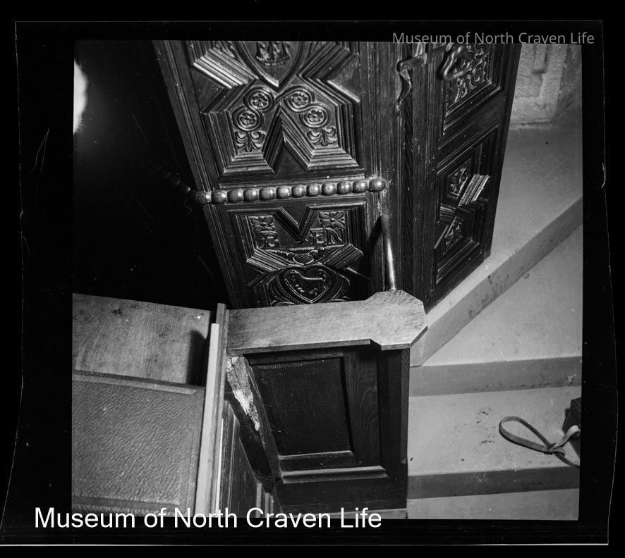 A 2 ¼" gelatin silver acetate film negative. A view of panels of the three decker 17C pulpit in the church of St Alkelda in Giggleswick (https://historicengland.org.uk/listing/the-list/list-entry/1157303?section=official-list-entry)Collection